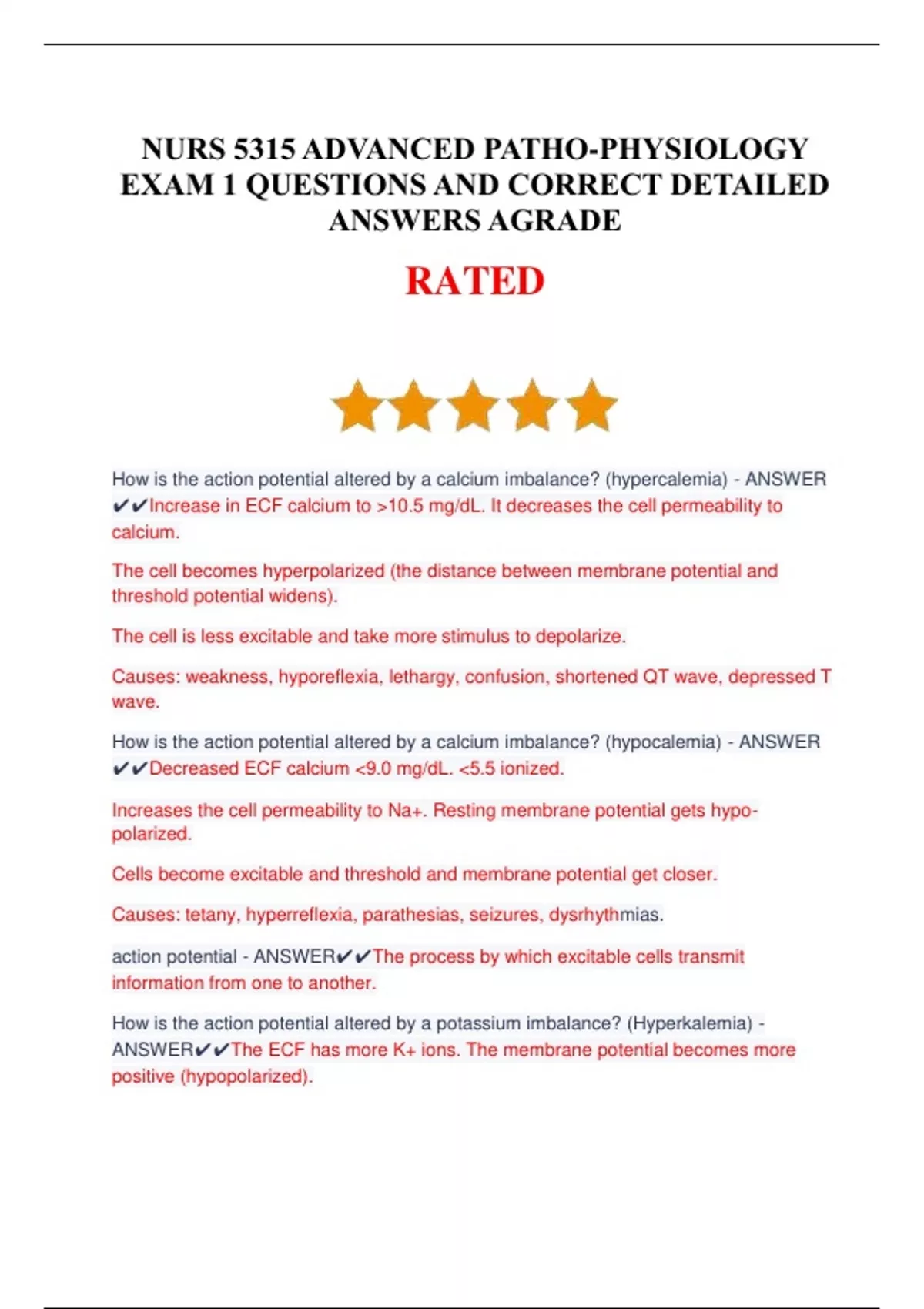 NURS 5315 ADVANCED PATHOPHYSIOLOGY EXAM 1 QUESTIONS AND CORRECT DETAILED ANSWERS AGRADE