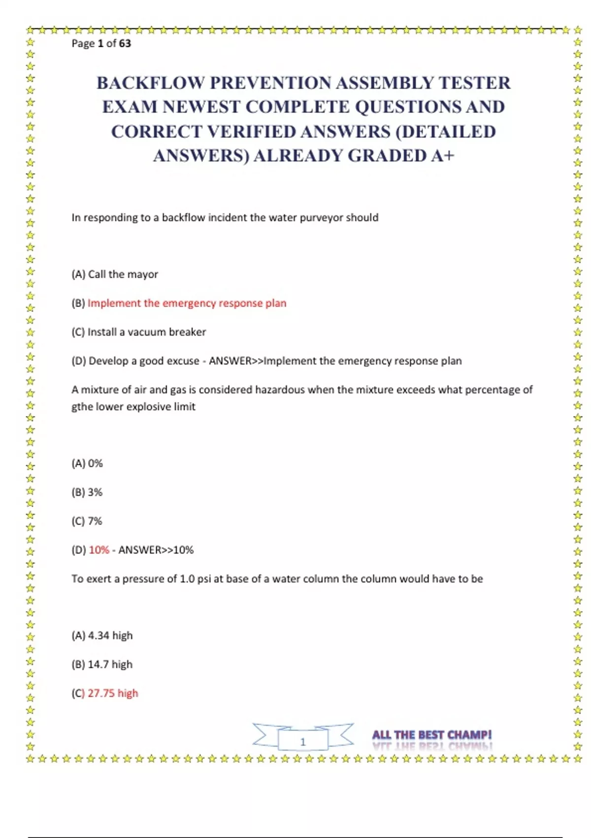 BACKFLOW PREVENTION ASSEMBLY TESTER EXAM PACKAGE