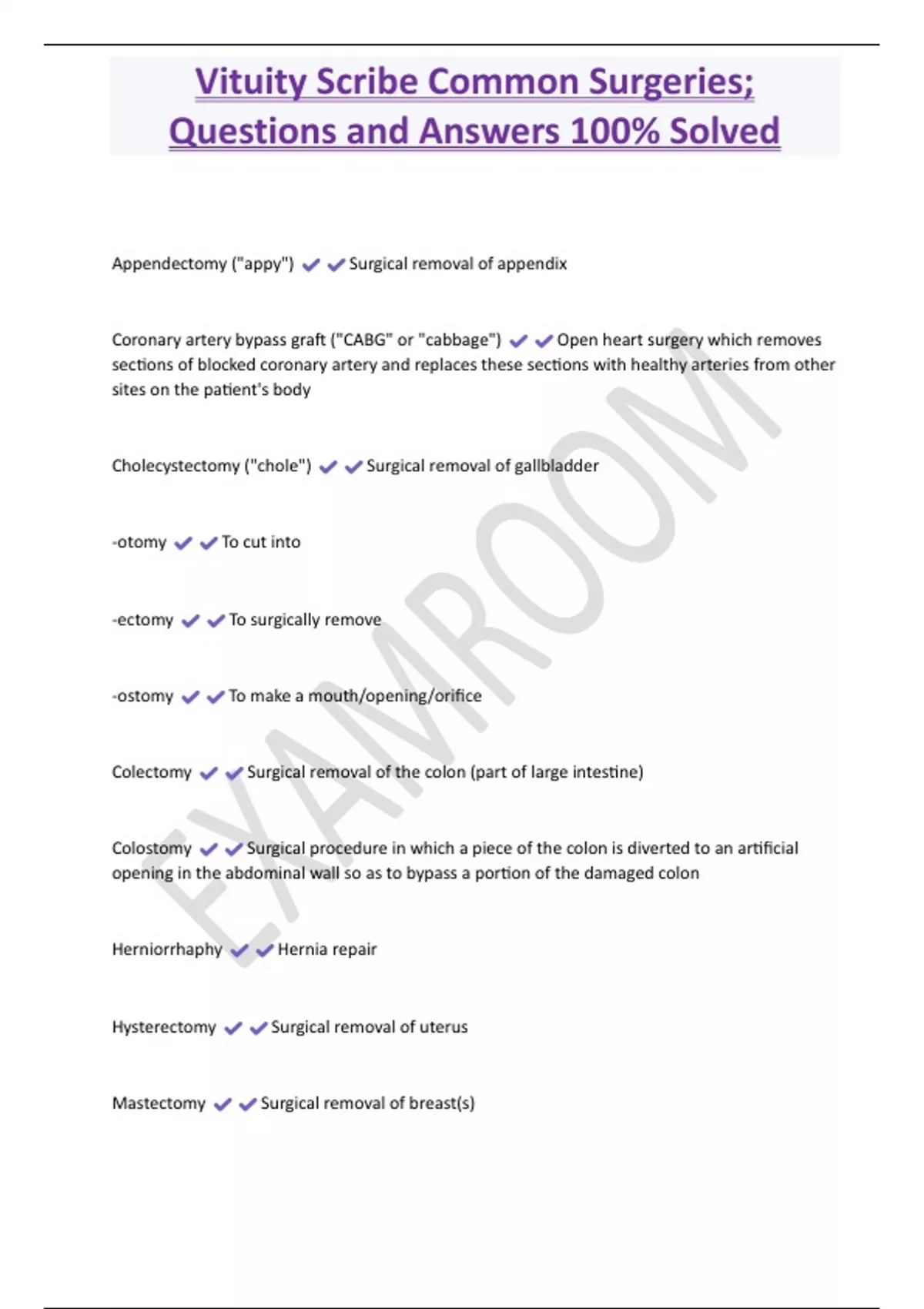 Vituity Medical Scribe Exam 1, Vituity Medical Scribe Exam 2 (Common words and phrases.)Qs &As 2 Exam (elaborations) Vituity Medical Scribe Exam 1(Common words and phrases.)Test Questions and Answers 100% Solved 3 Exam (elaborations) VITUITY Scribe General Medical Terminology; Questions and Answers 100% Solved 4 Exam (elaborations) Vituity Scrib