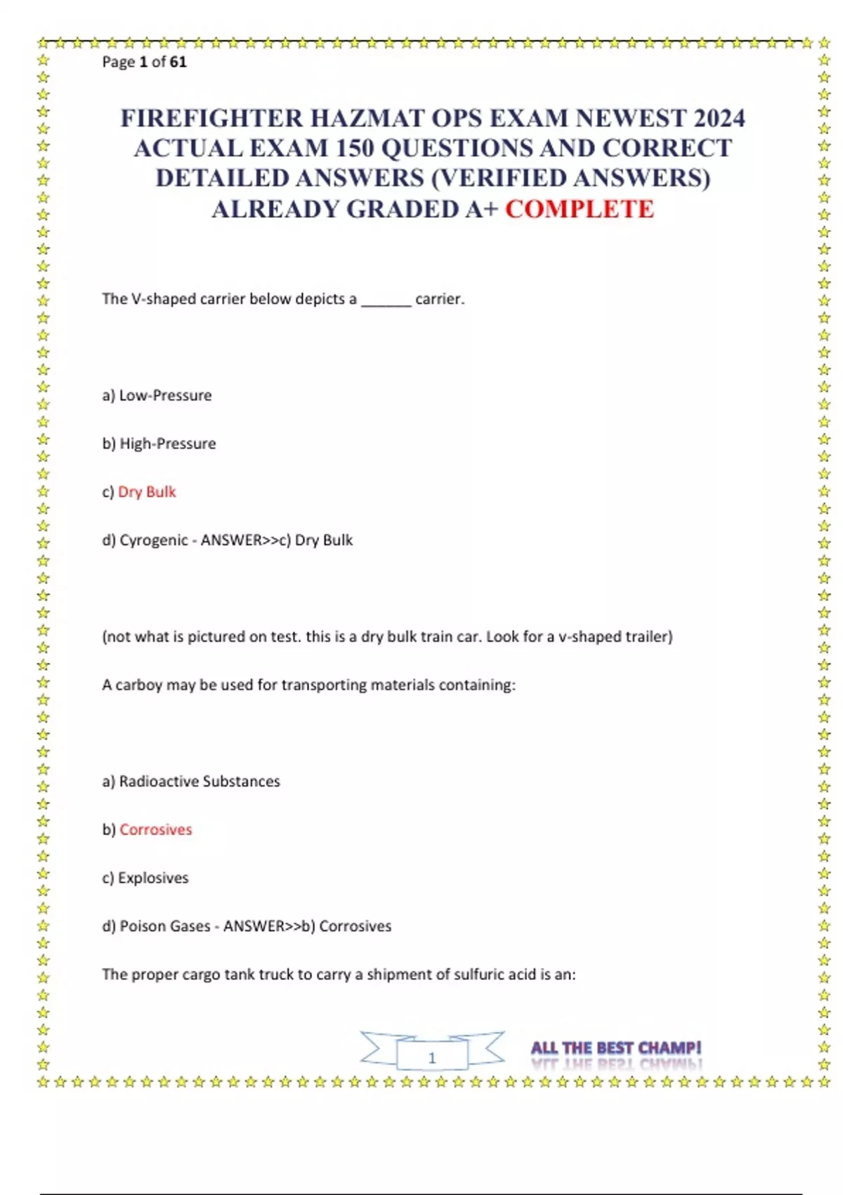 FIREFIGHTER HAZMAT OPS EXAM NEWEST 2024 ACTUAL EXAM 150 QUESTIONS AND CORRECT DETAILED ANSWERS (VERIFIED ANSWERS) ALREADY GRADED A+ COMPLETE