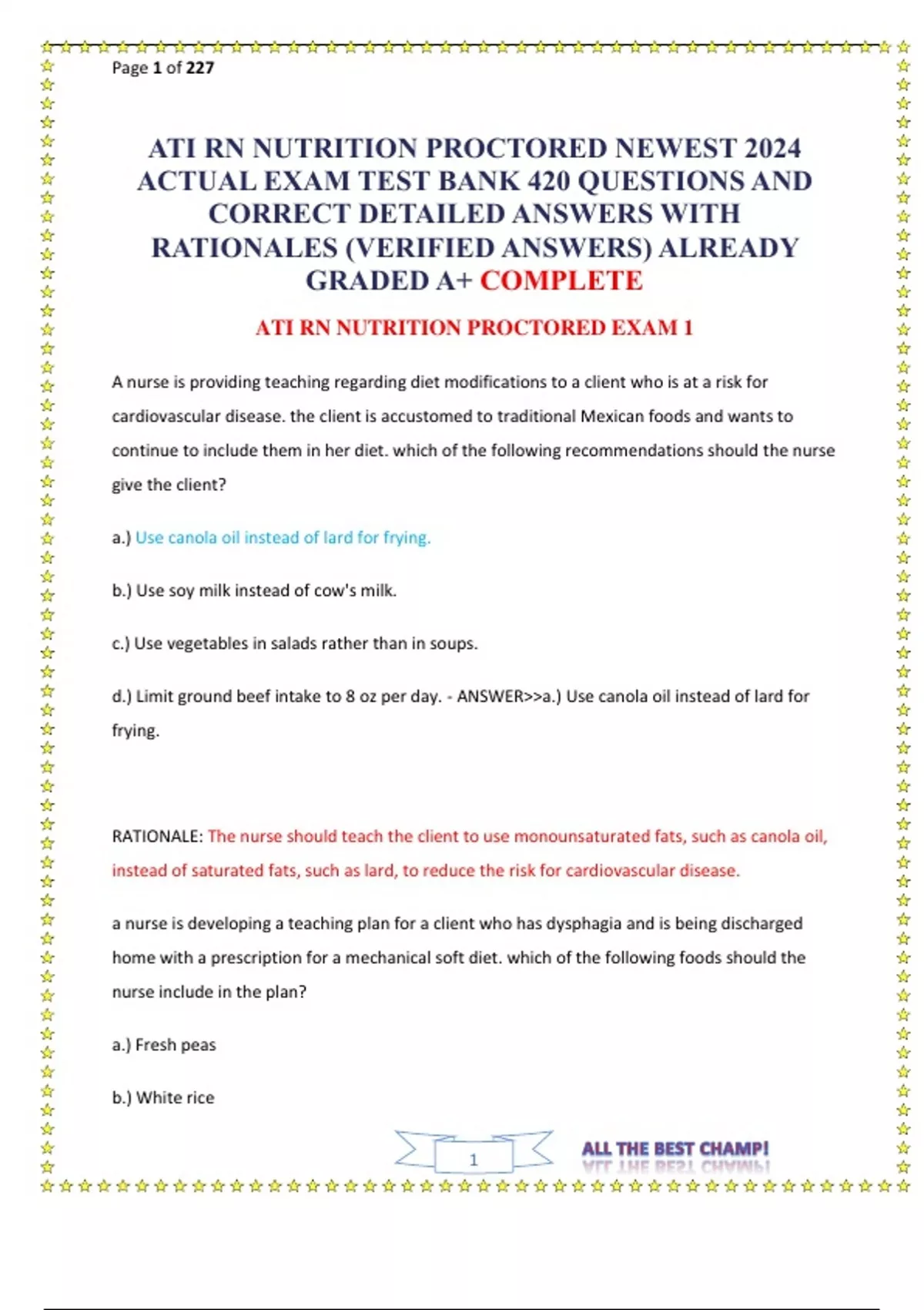 ATI RN NUTRITION PROCTORED NEWEST 2024 ACTUAL EXAM TEST BANK 420 QUESTIONS AND CORRECT DETAILED ANSWERS WITH RATIONALES (VERIFIED ANSWERS) ALREADY GRADED A+ COMPLETE