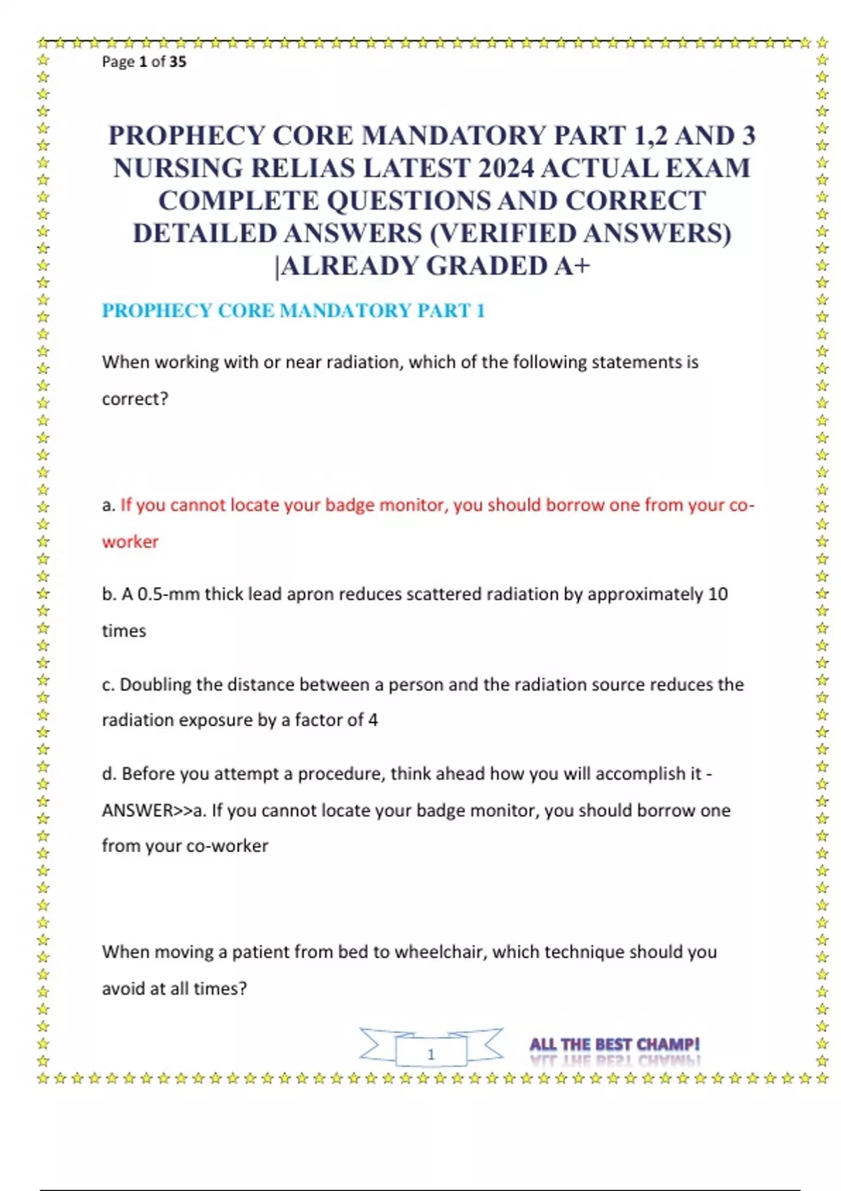 PROPHECY CORE MANDATORY PART 1,2 AND 3 NURSING RELIAS LATEST 2024 ACTUAL EXAM COMPLETE QUESTIONS AND CORRECT DETAILED ANSWERS (VERIFIED ANSWERS) ALREADY GRADED A+