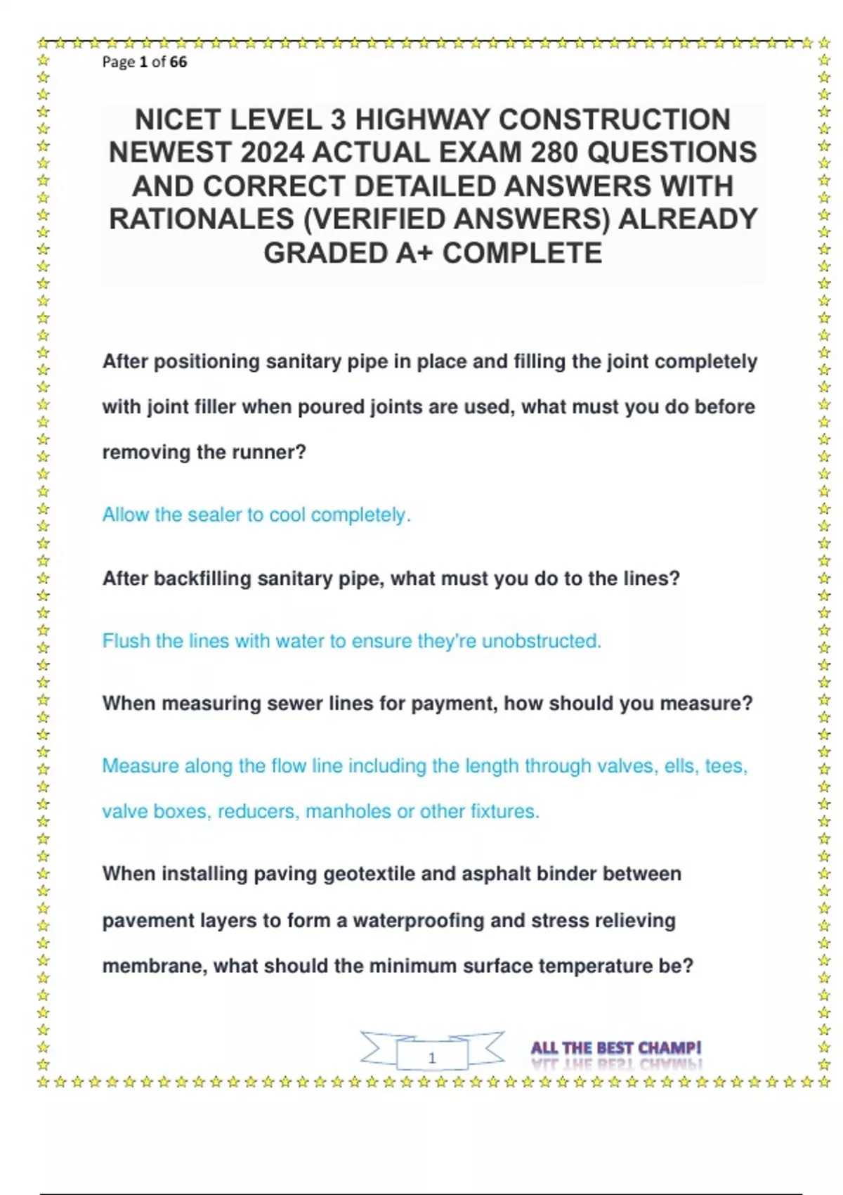 NICET LEVEL1,2& 3 HIGHWAY CONSTRUCTION NEWEST 2024 ACTUAL EXAM ALL 500 QUESTIONS AND CORRECT DETAILED ANSWERS WITH RATIONALES (VERIFIED ANSWERS) ALREADY GRADED A+ COMPLETE