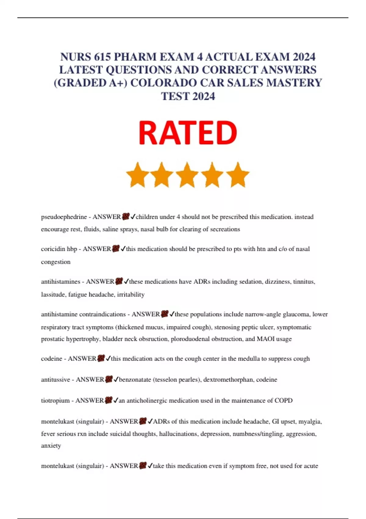 NURS 615 PHARM EXAM 1&2 LATEST 2024