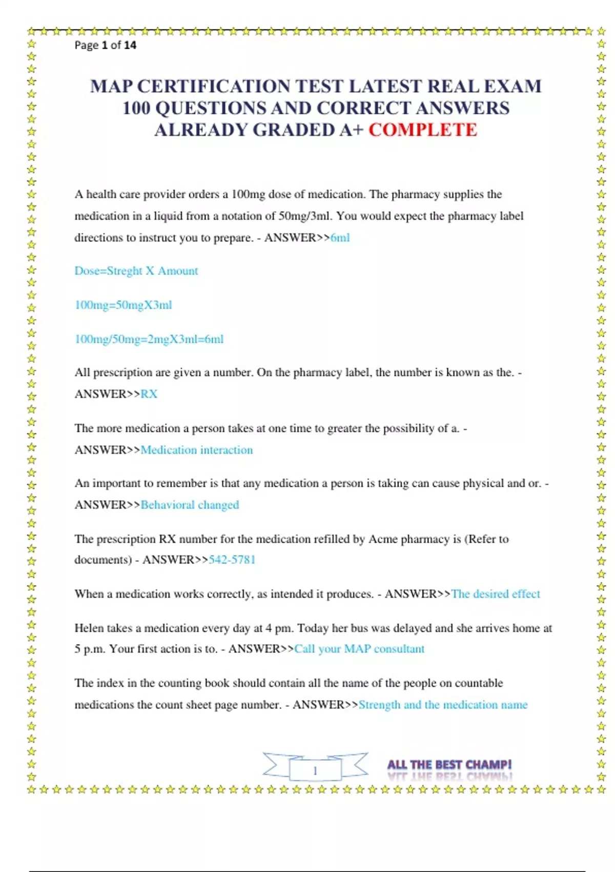MAP CERTIFICATION TEST LATEST REAL EXAM 100 QUESTIONS AND CORRECT ANSWERS ALREADY GRADED A+ COMPLETE
