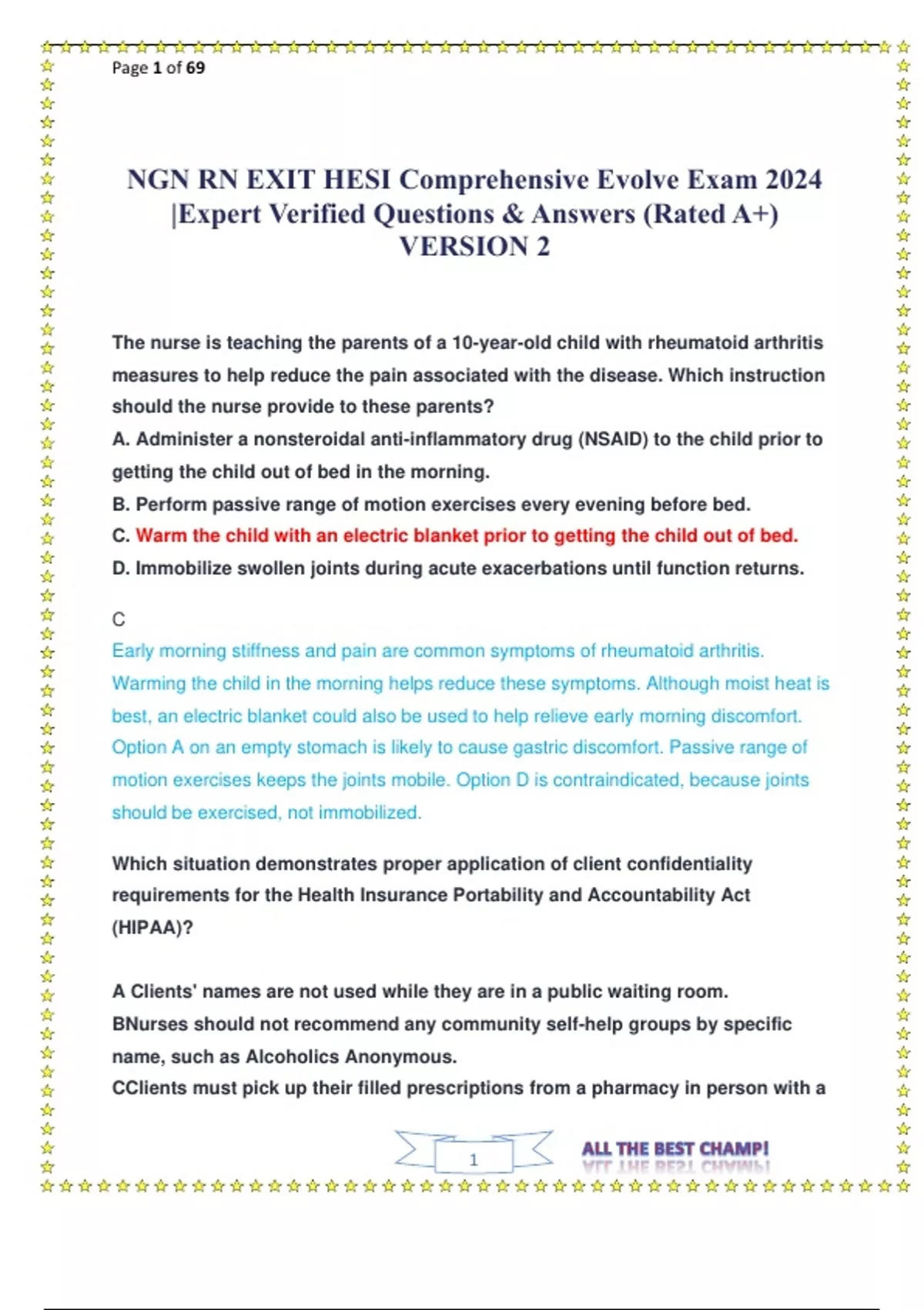 NGN RN EXIT HESI Comprehensive Evolve Exam 2024 Expert Verified Questions & Answers (Rated A+) 4 VERSIONS COMPLETE