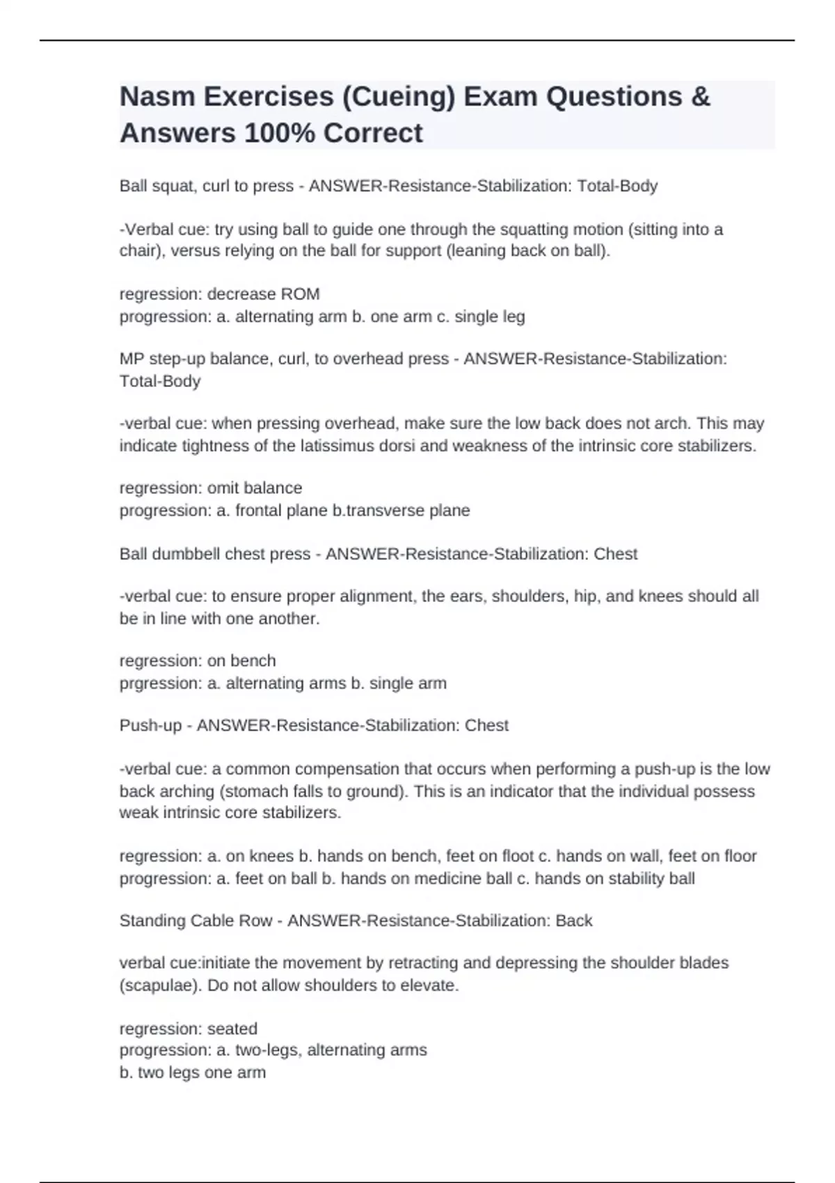 Nasm Exercises (Cueing) Exam Questions & Answers 100% Correct