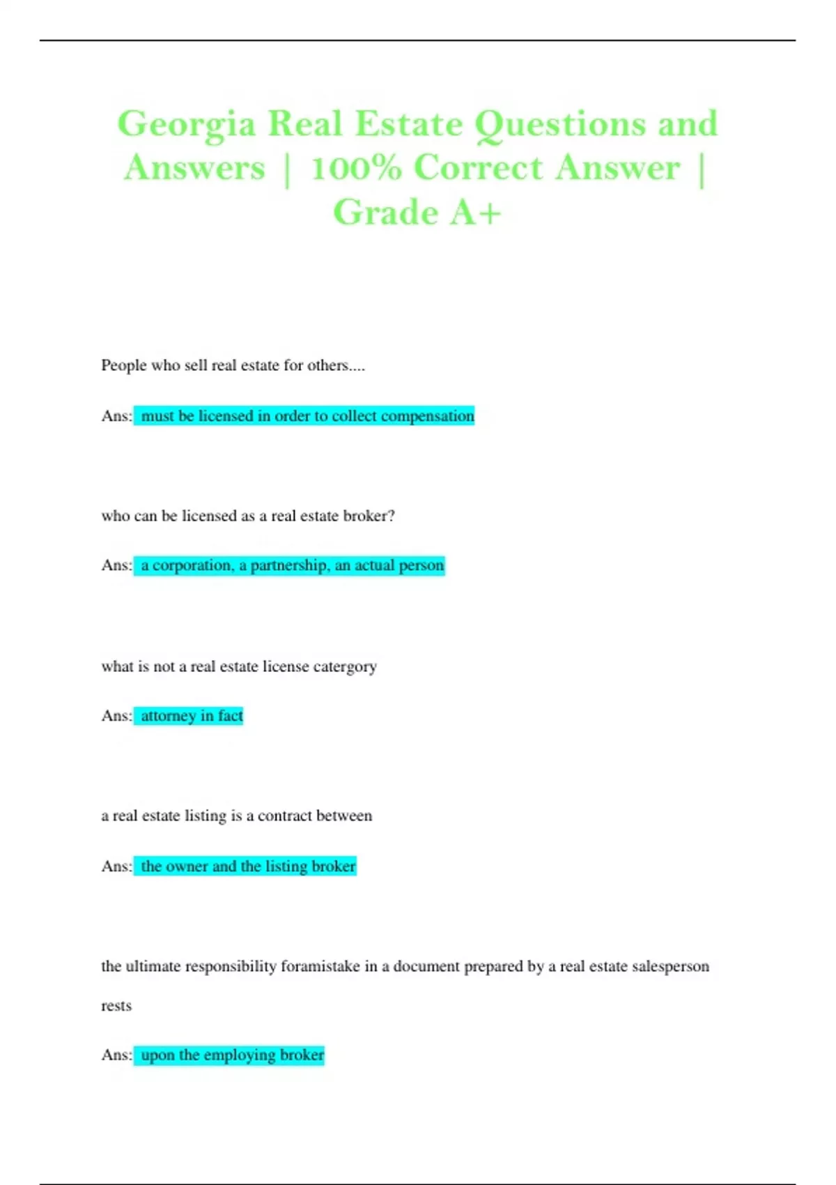 Georgia Real Estate Questions and Answers | 100% Correct Answer | Grade A+