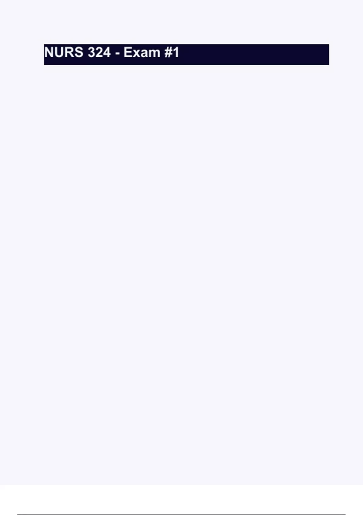 NURS 324 - Exam #1 Questions with 100% Actual correct answers | verified | latest update | Graded A+ | Already Passed | Complete Solution