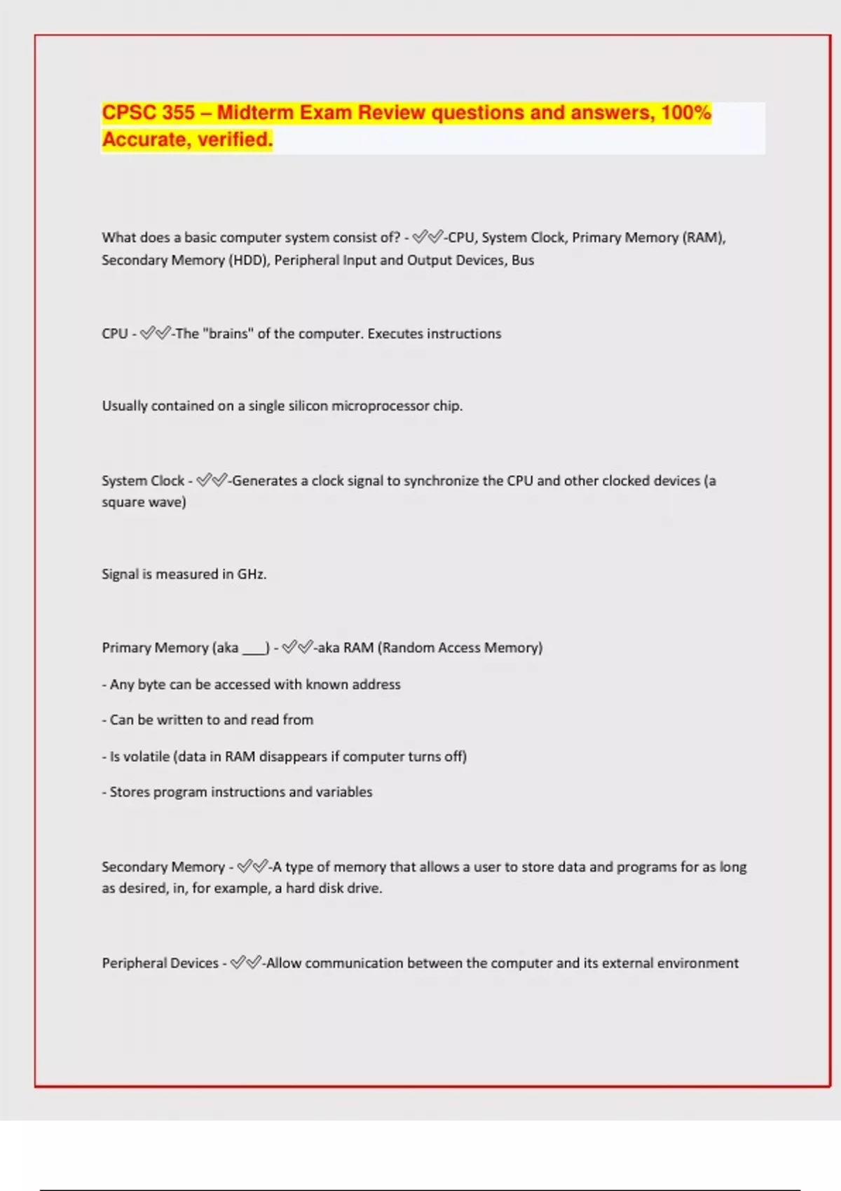 CPSC 355 Exam Only Real Exam Review questions and answers, 100% Accurate, graded A+/