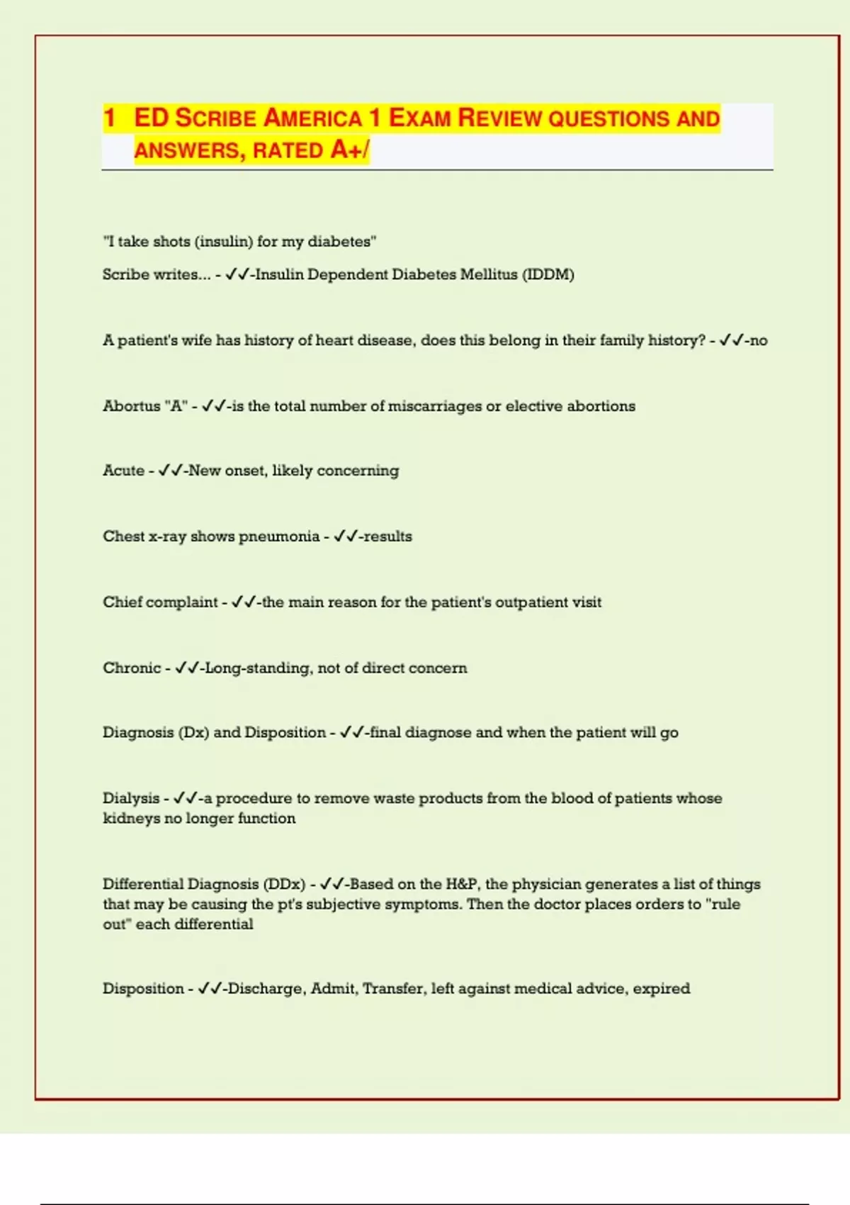 EMERGENCY DEPARTMENT - SCRIBE AMERICA - COURSE 1/ REVIEW QUESTIONS AND ANSWERS, RATED A+/