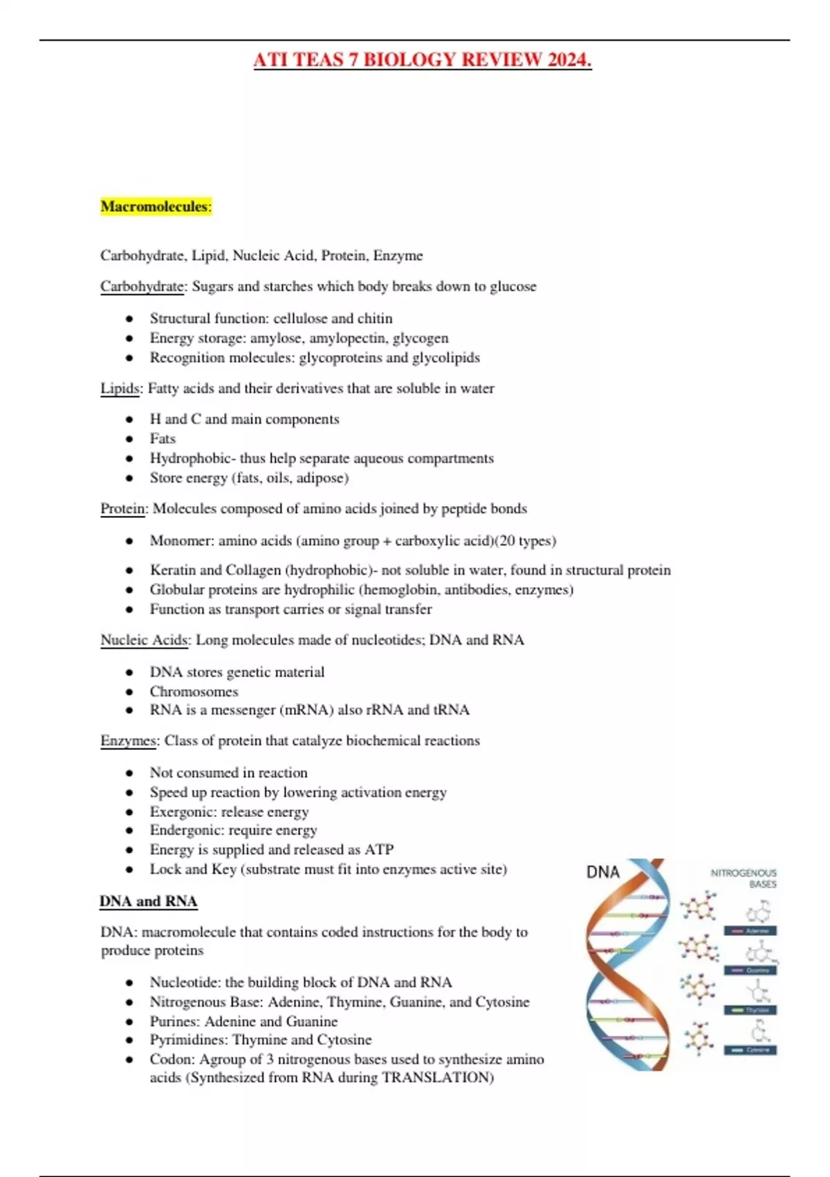 ATI TEAS 7 BIOLOGY REVIEW 2024