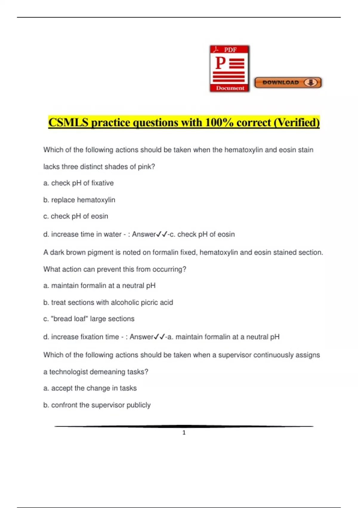 CSMLS Exam Practice Questions and Answers (100% Pass)