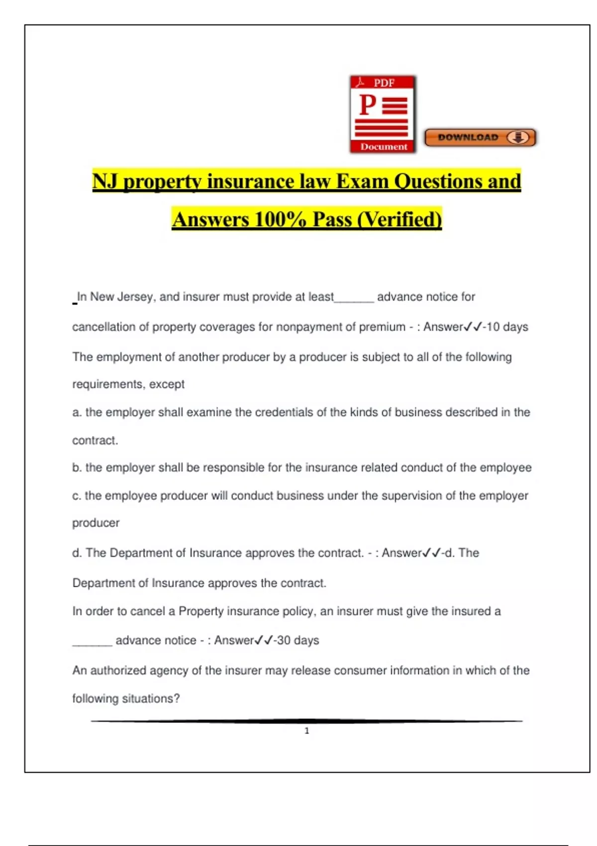 Nj property and casualty insurance Practice Questions and Answers (100% Pass)