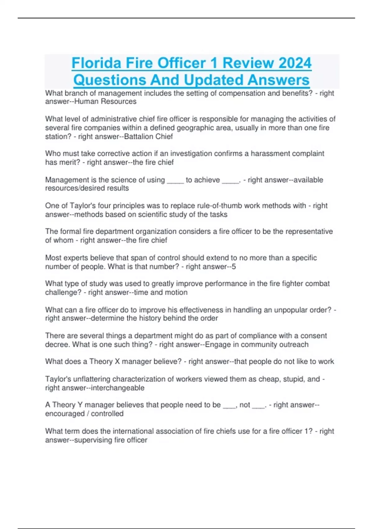 Florida Fire inspector one Practice test (use written response) Queations 2024 With Correct Answers