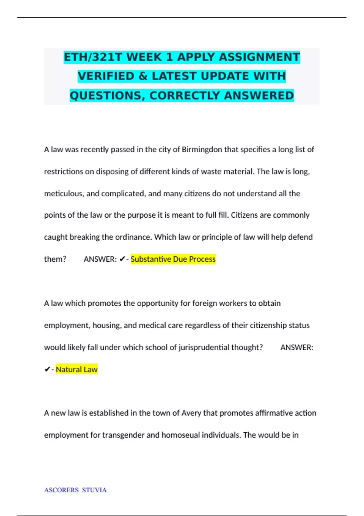 ETH/321T WEEK 1 APPLY ASSIGNMENT VERIFIED & LATEST UPDATE WITH QUESTIONS, CORRECTLY ANSWERED ETH/321T WEEK 2 APPLY ASSIGNMENT VERIFIED & LATEST UPDATE WITH QUESTIONS, CORRECTLY ANSWEREDWEEK 3 PRACTICE ASSIGNMENT, ETH/321: WEEK 3 PRACTICE VERIFIED ASSIGNMENT QUESTIONS WITH CORRECT SOLUTIONS
