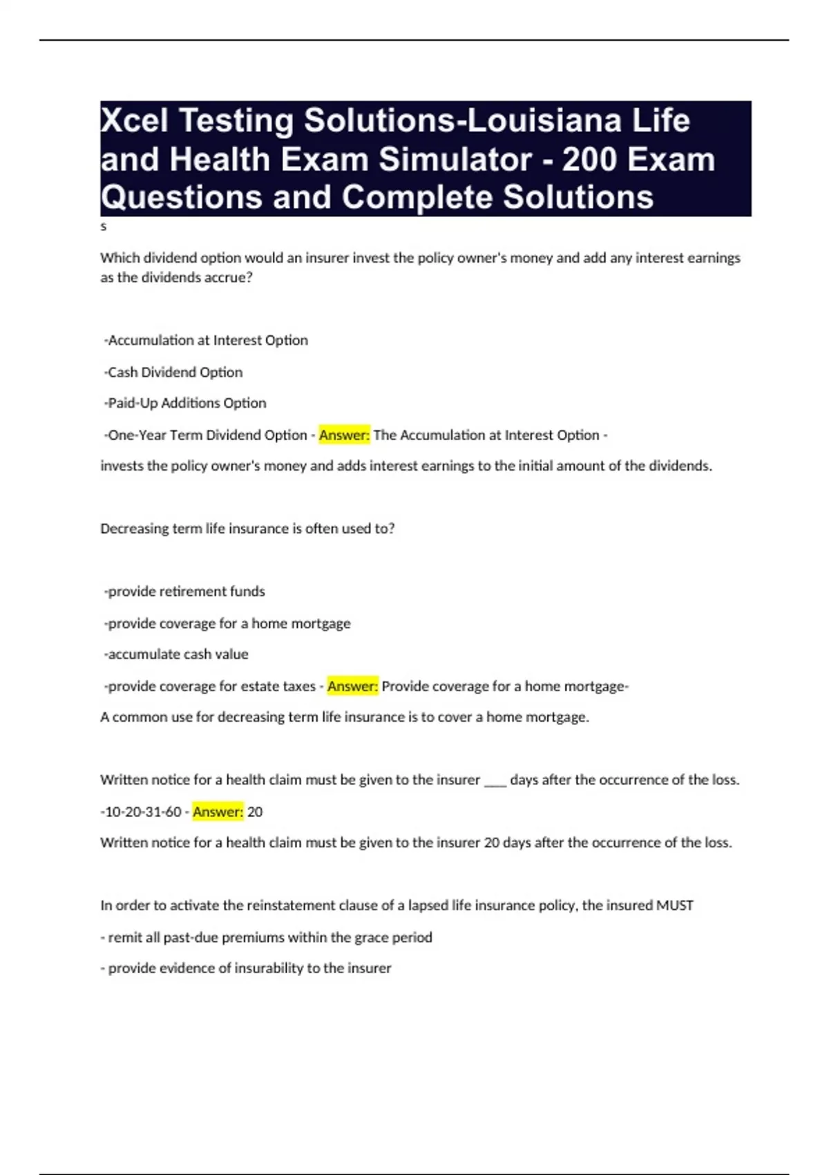 XCEL Louisiana Laws and Rules Exam Questions and Complete Solutions Bundle Compilation Graded A+