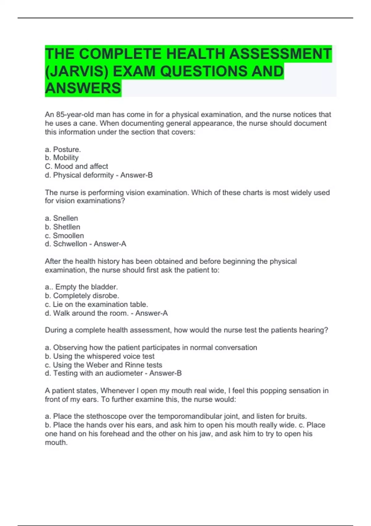 HEALTH ASSESSMENT EXAM JARVIS QUESTIONS AND ANSWERS