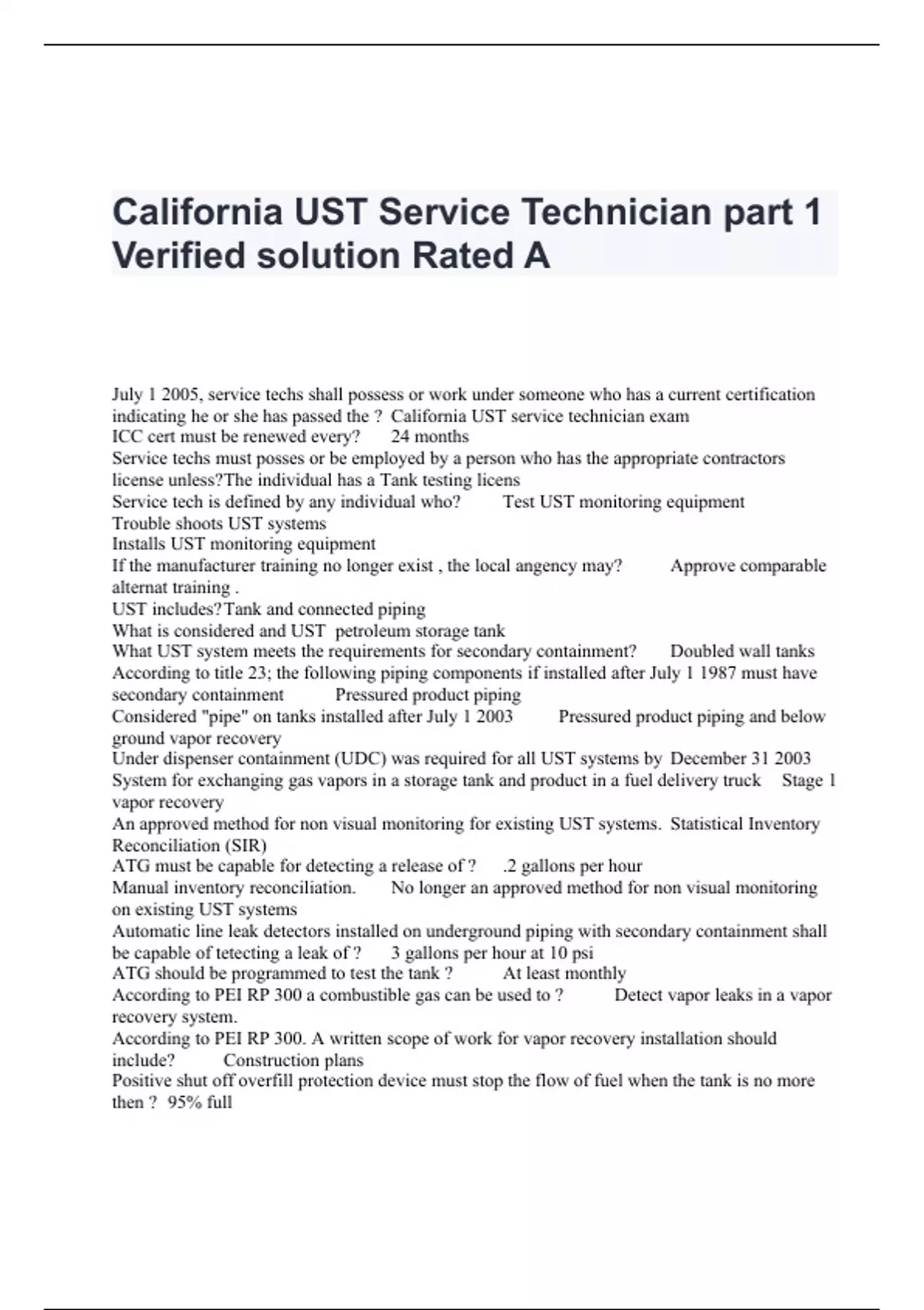 BUNDLE FOR >.ICC California UST Inspector Exam Questions and Answers 100% Correct 202425 Version.