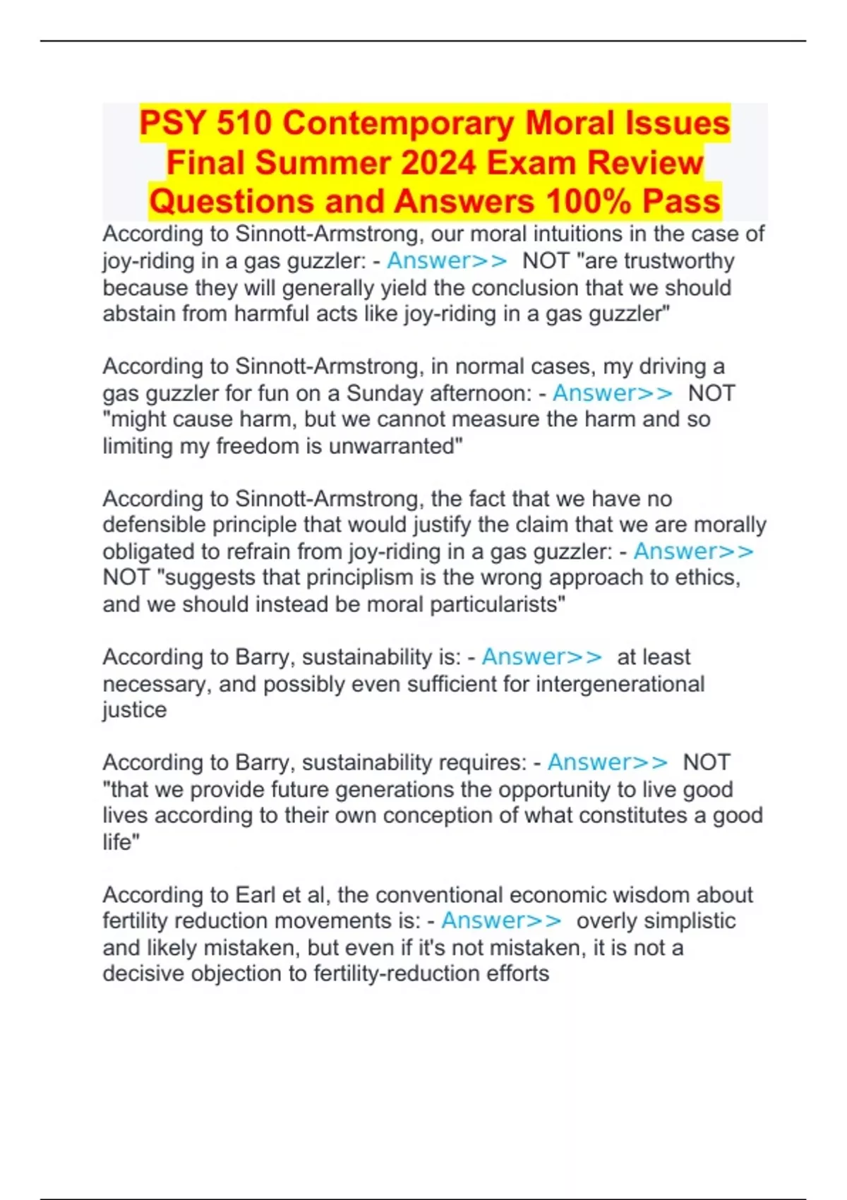 PSY-510: Contemporary and Ethical Issues in Psychology :- EXAM PREPARATIONs COMPILATION BUNDLE 100% GUARANTEED SUCCESS Invest in your success today! Your Success, Our Mission. Let's Achieve Academic Excellence Toget