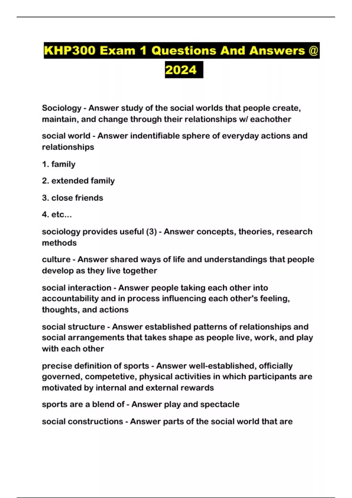 KHP300 Exam 1 Questions And Answers @ 2024