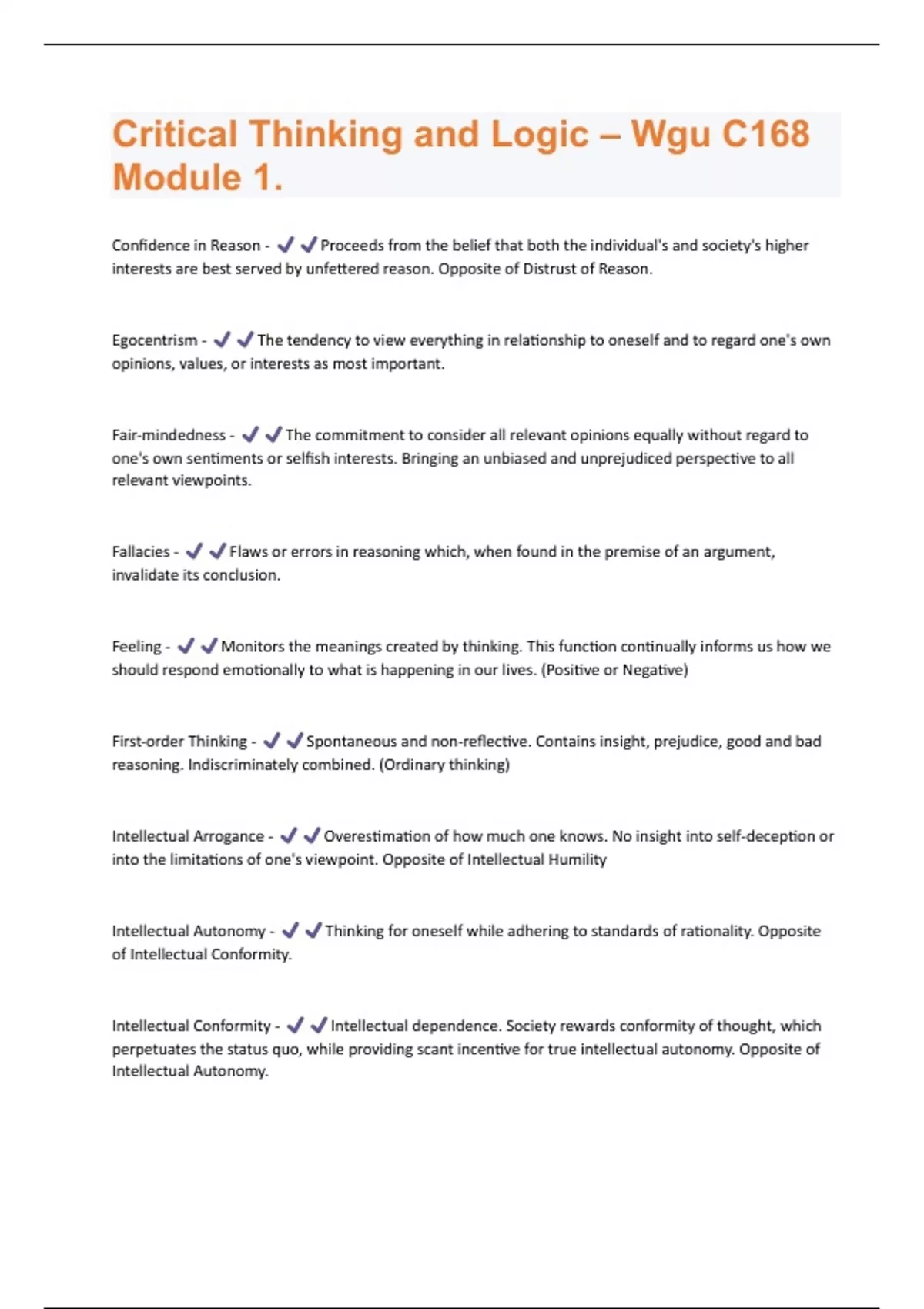 WGU C168: Critical Thinking - Module 1 Question with 100 % correct answers | Verified | updated