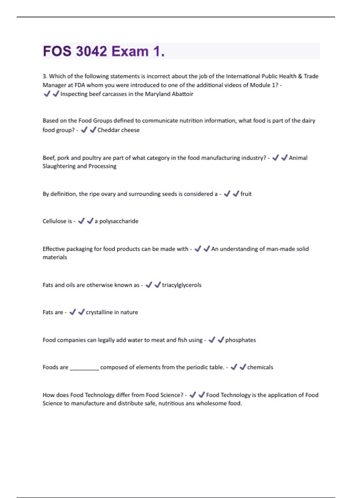 FOS 3042 - EXAM 3 Questions With Answers Graded A+ Assured Success