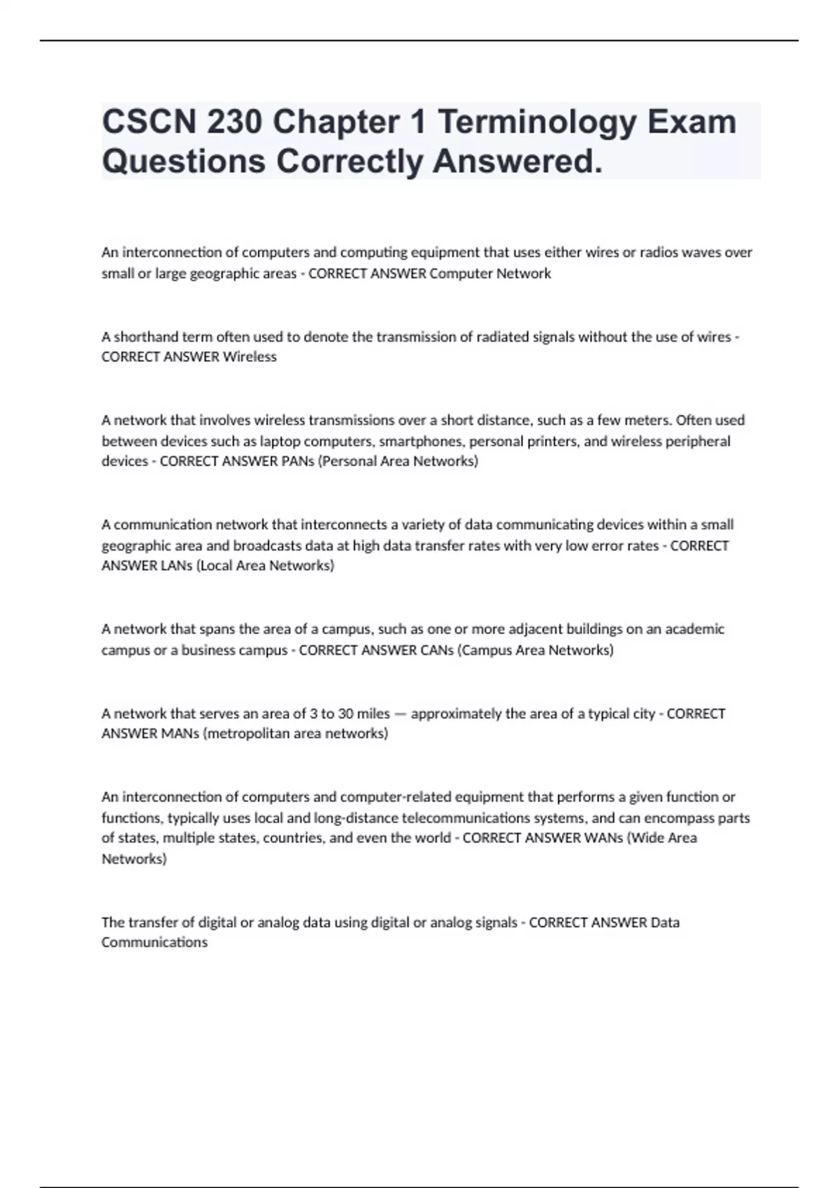 CSCN 230 BUNDLE PACK EXAM QUESTIONS CORRECTLY ANSWERED.