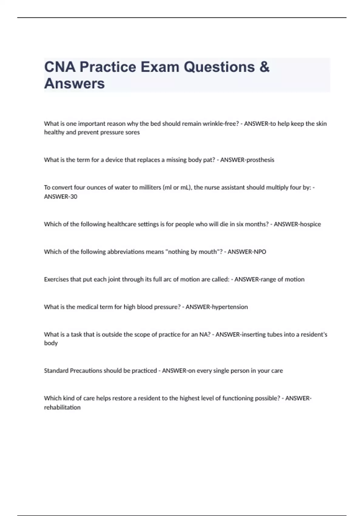 CNA Practice Exam Questions & Answers