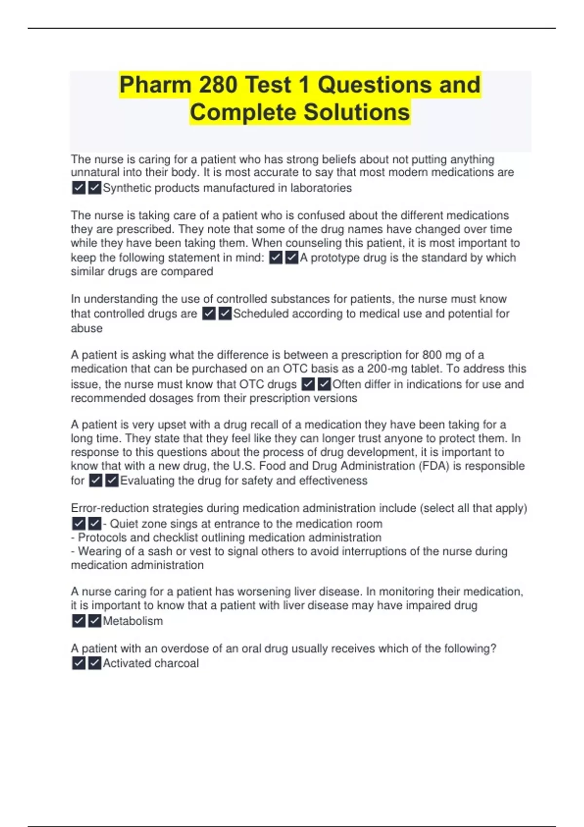 NUR 280 Q&A Bundle