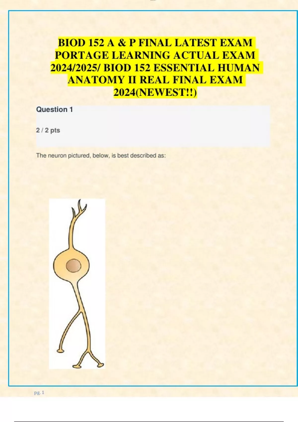 BIOD 152 MODULE 1 AND 2 WITH BIOD 152 FINAL LATEST EXAM PORTAGE LEARNING EXAM 2024/2025/ BIOD 152 ESSENTIAL HUMAN ANATOMY II REAL FINAL ACTUALEXAM 2024(NEWEST!!)