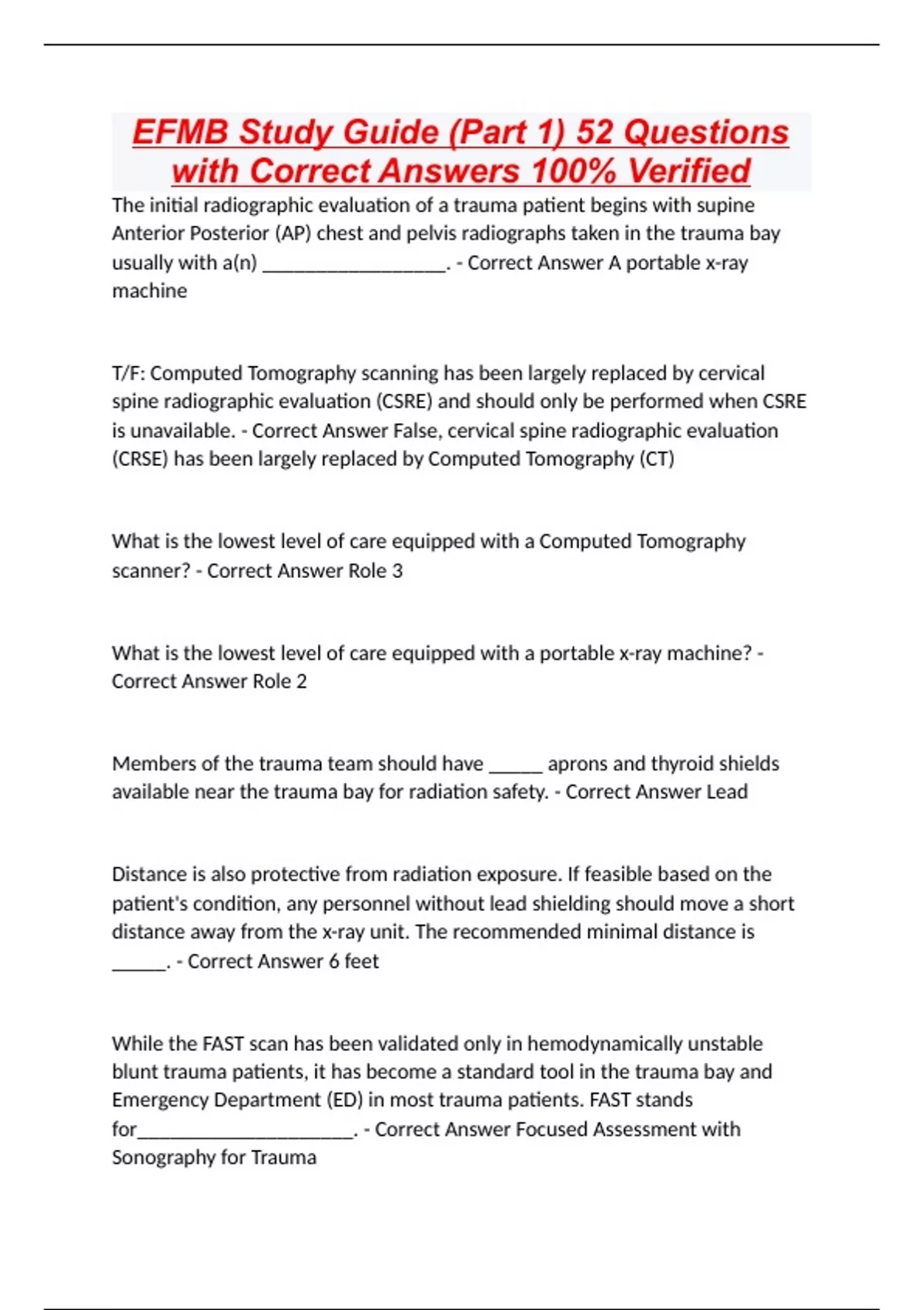 EFMB Part 2 Questions with Correct Answers 100% Verified, EFMB QUESTIONS WITH COMPLETE SOLUTIONS, EFMB Written Test FY23 Questions with Correct Answers 100% Verified, EFMB Study Guide Questions with 100% Verified Correct Answers 2024, EFMB Written Test 130 Questions With Correct Answers, EFMB Practice Test #1 Questions with Correct Answers