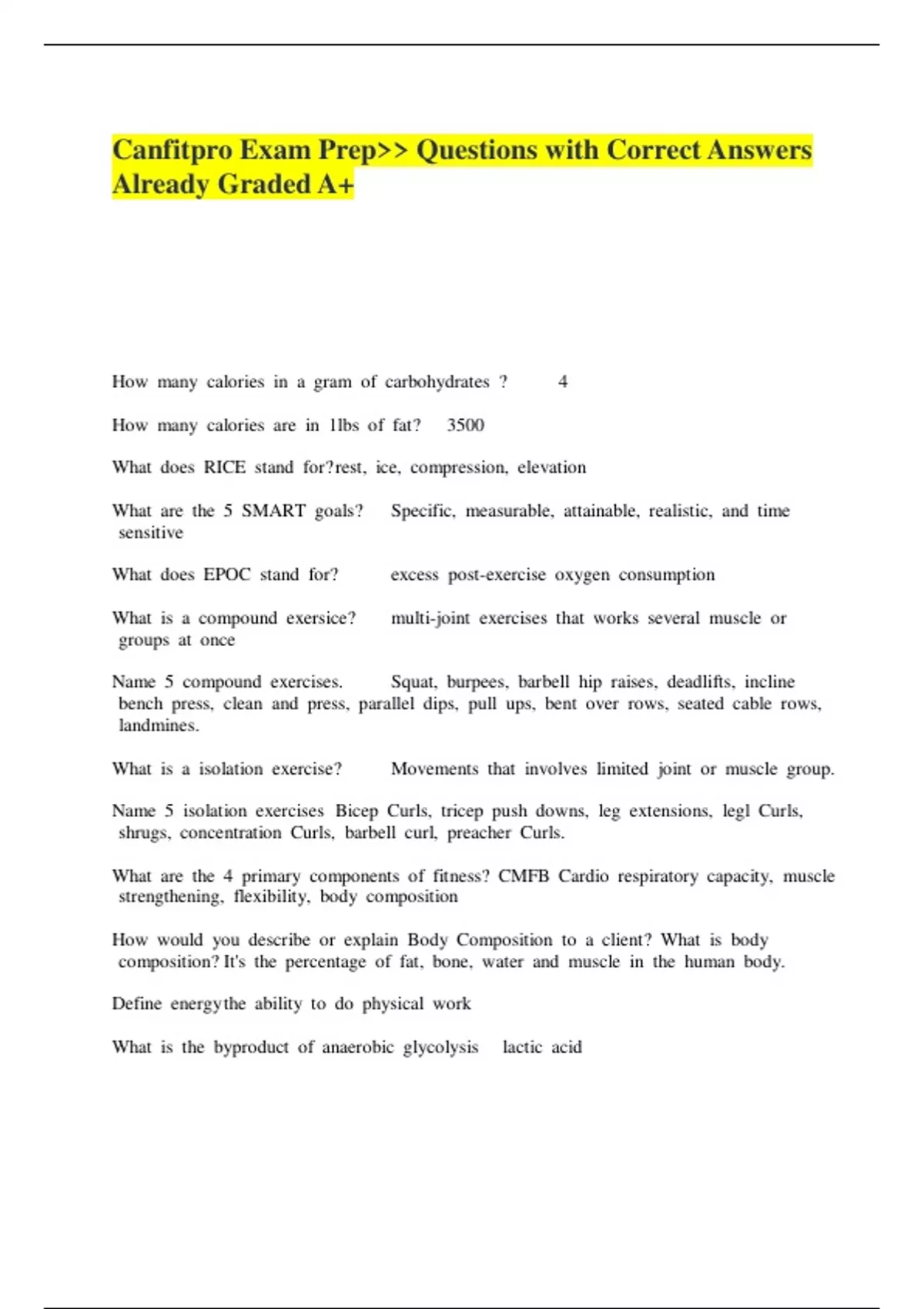 Bundle for>> Canfitpro Exam Prep Questions with Correct Answers Already Graded A+
