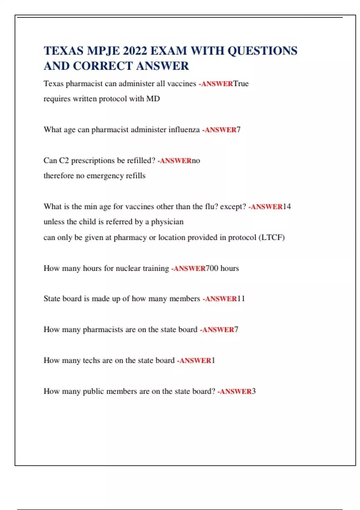 TEXAS MPJE 2024/2024 EXAM WITH QUESTIONS AND VERIFIED ANSWERS GRADED A+