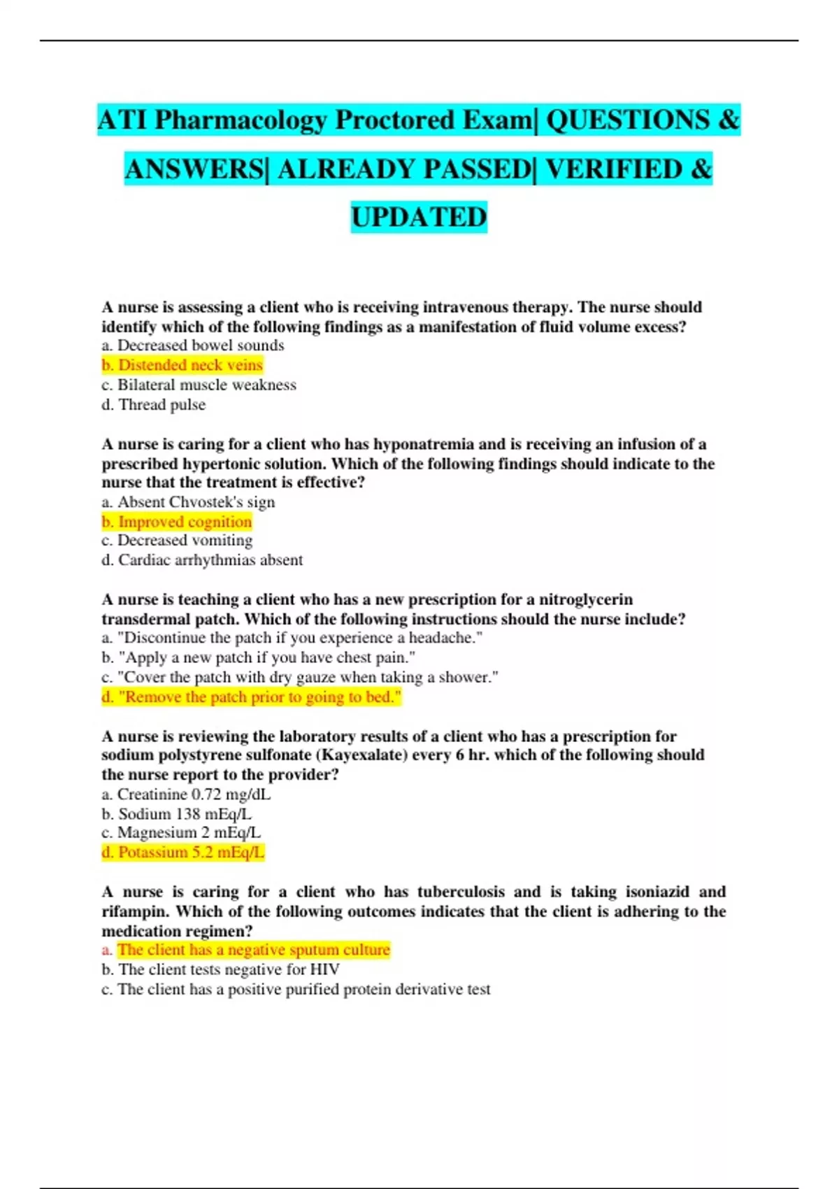 ATI Pharmacology Proctored Exam Pack| QUESTIONS & ANSWERS| ALREADY PASSED| VERIFIED & UPDATED