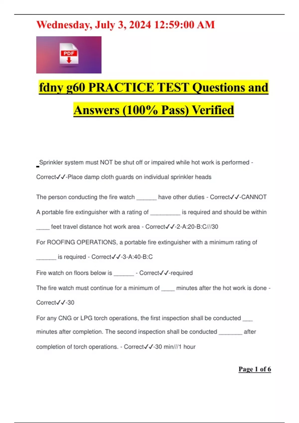 fdny g60 PRACTICE TEST Questions and Answers (100% Pass) Verified