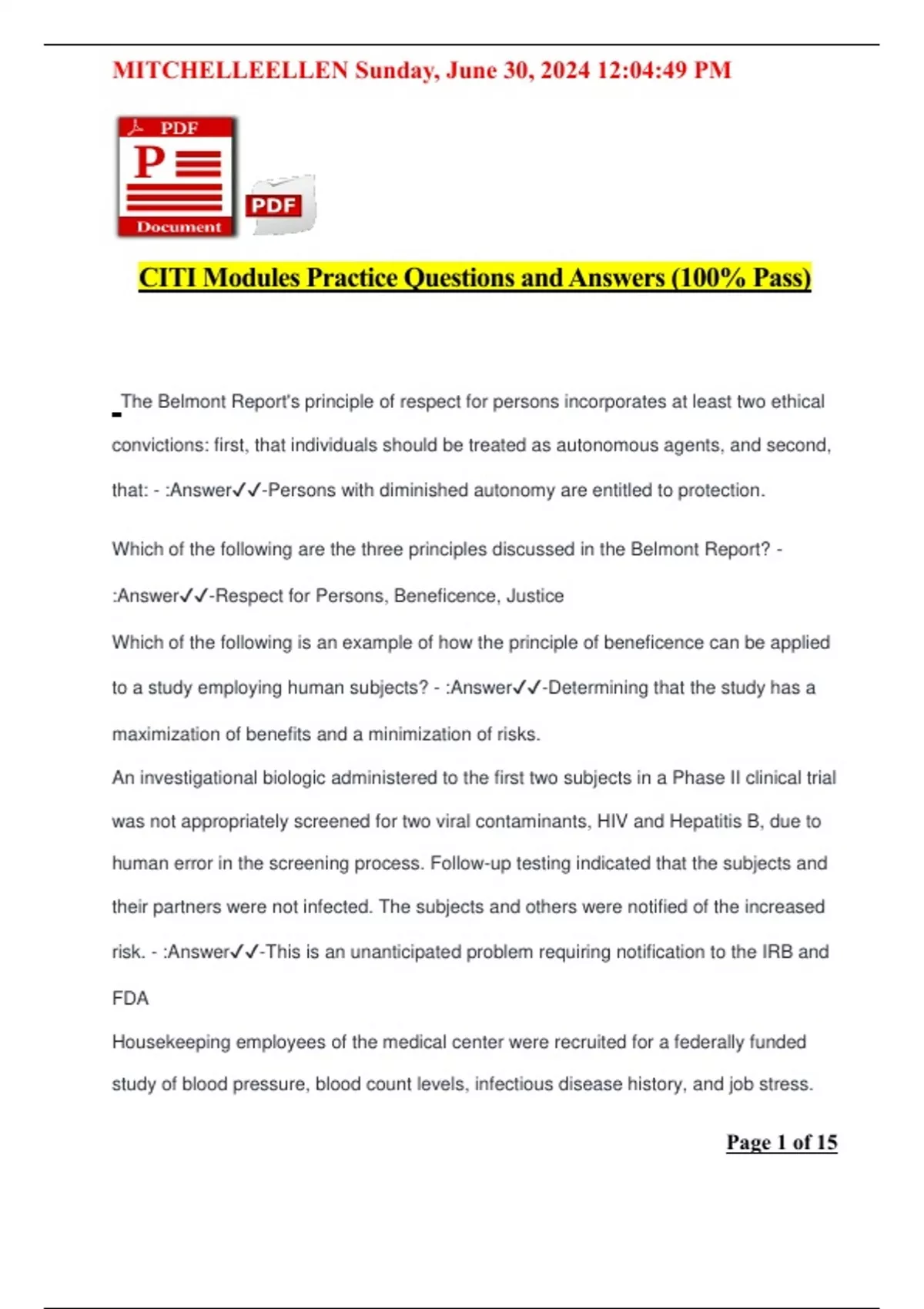 CITI Modules 9-17 Practice Questions and Answers (100% Pass)
