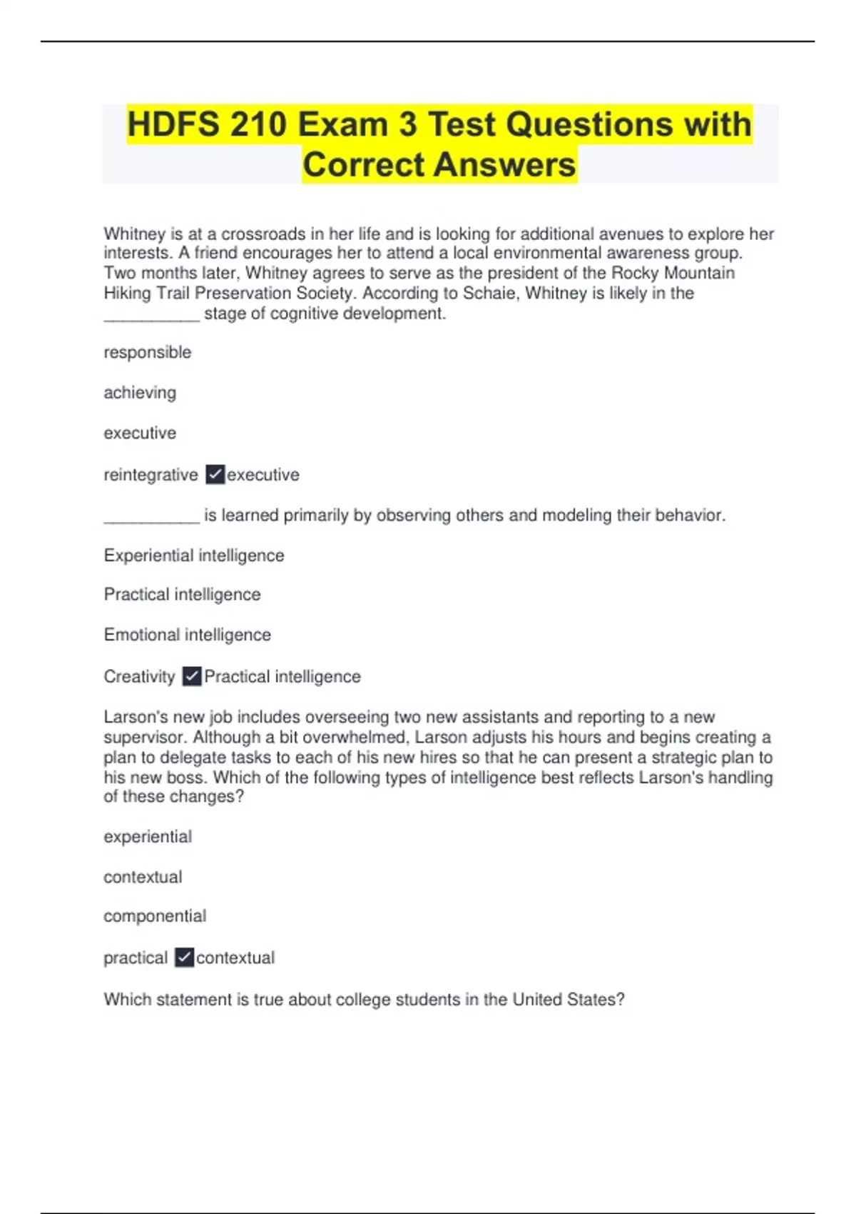 HDFS 210 FINAL PRACTICE EXAM QUESTIONS AND CORRECT ANSWERS