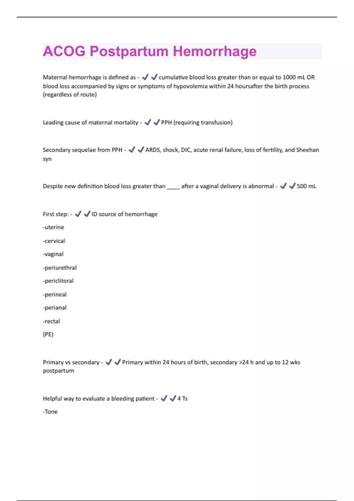 ACOG Postpartum Hemorrhage Questions & Answers Solved 100% Correct!!