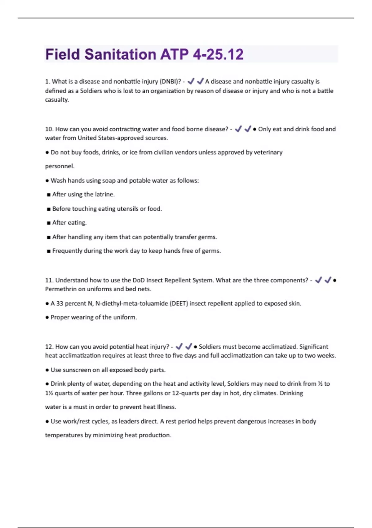 Field Sanitation (FM 4-25.12) Questions And Answers Graded A+