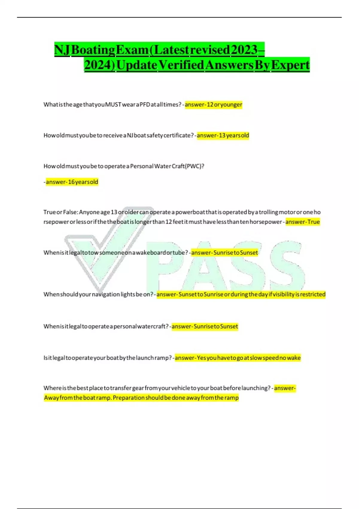 NJ Boating Exam (Latest revised2023–2024)Update Verified Answers ByExper