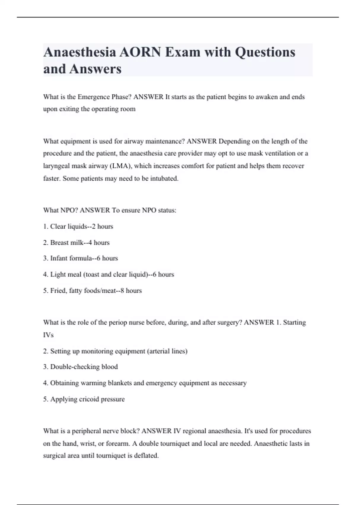 Anesthesia AORN Exam with Questions and Answers AORN Quiz Prep with Questions and Answers AORN Exam with Questions and Answers AORN Quiz with Questions and Answers AORN Practice Questions and Answers AORN: Positioning Exam with Questions and Answers AORN Professionalism Exam with Questions and Answers AORN Modules Post Test with Questions and Answe