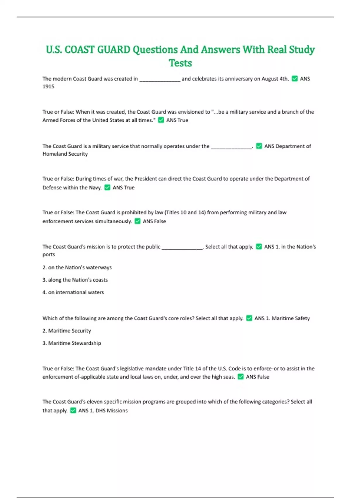 USCG Complete Study Package Deal With Verified Updates Rated A+ Solutions