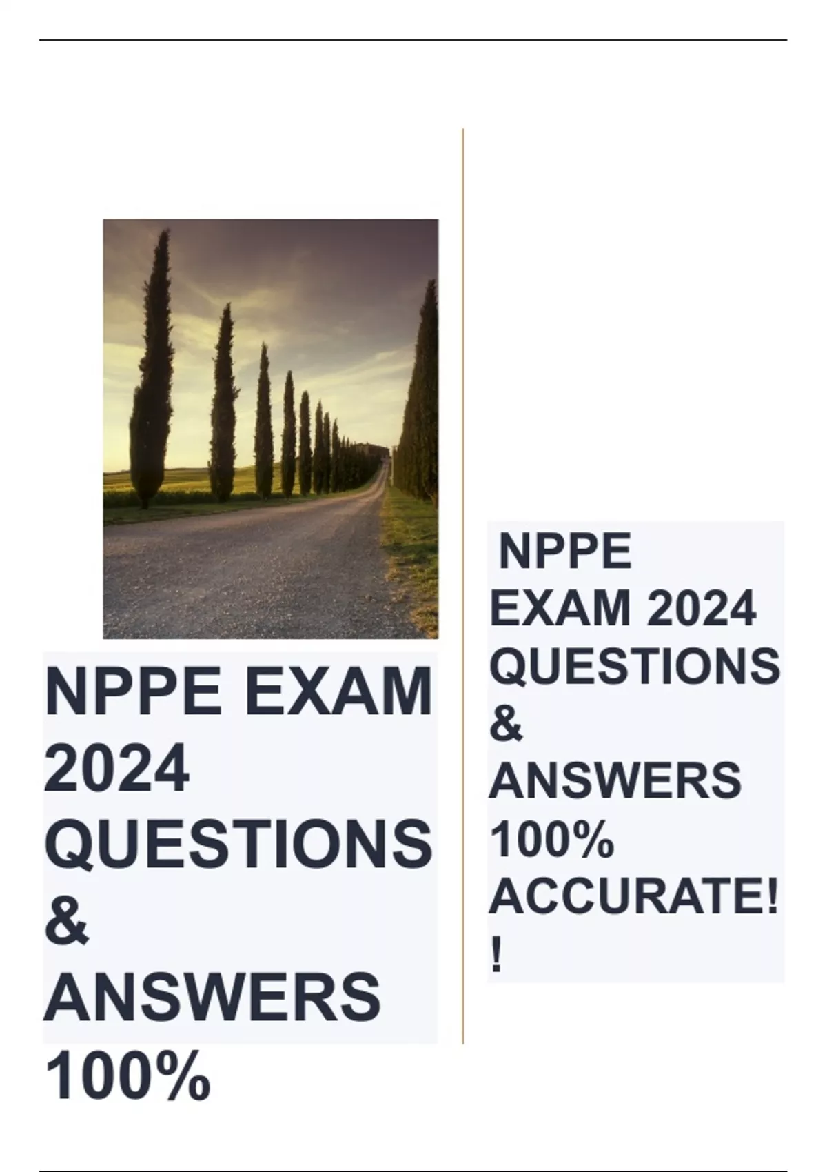 EXAM BUNDLE NPPE (COMPLETE PACKAGE) Questions & Answers 100% Correct!EXAM BUNDLE NPPE (COMPLETE PACKAGE) Questions & Answers 100% Correct!EXAM BUNDLE NPPE (COMPLETE PACKAGE) Questions & Answers 100% Correct!EXAM BUNDLE NPPE (COMPLETE PACKAGE) Questions & Answers 100% Correct!EXAM BUNDLE NPPE (COMPLETE PACKAGE) Questions & Answers 100% Cor