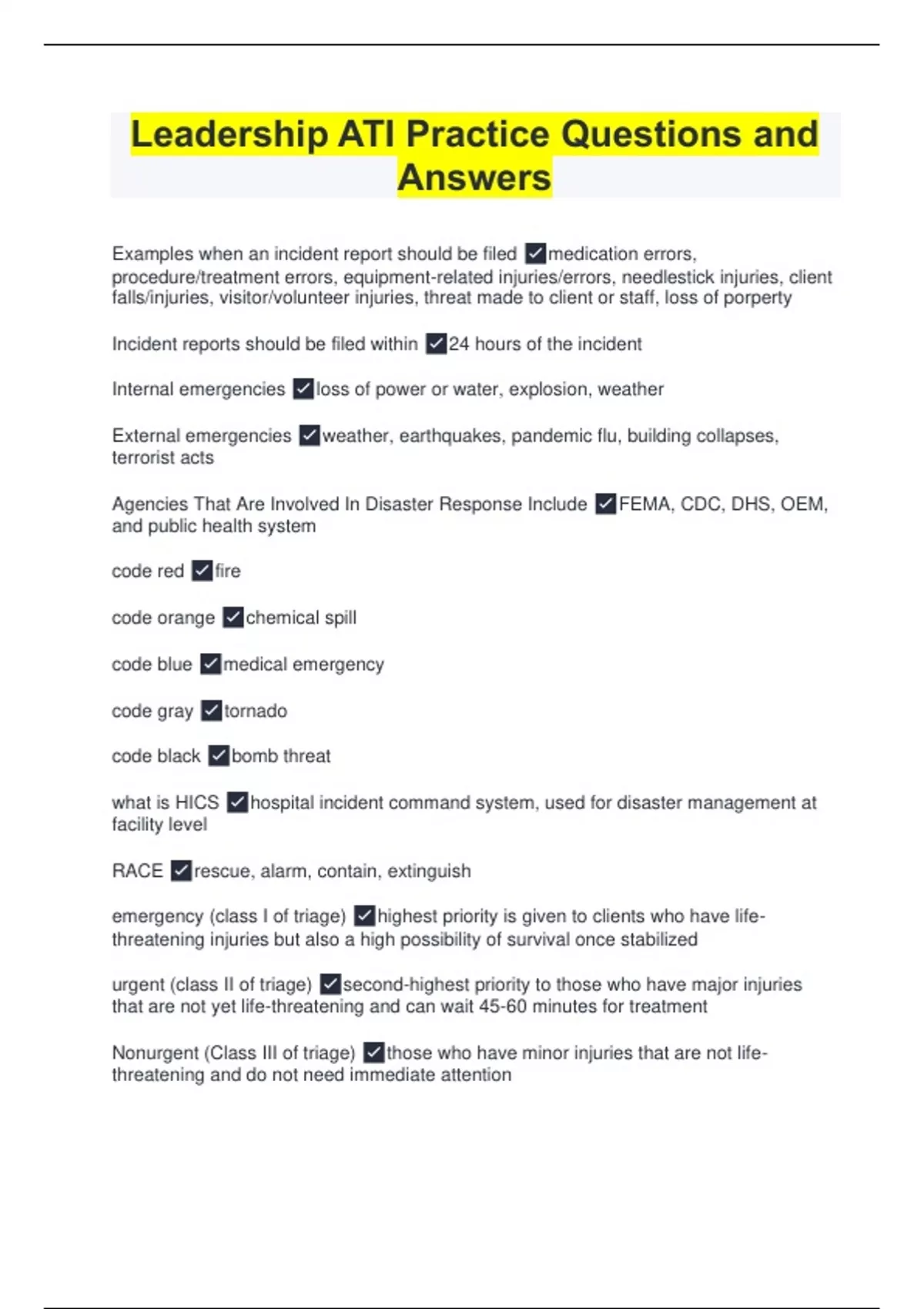 ATI Leadership Q&A Bundle