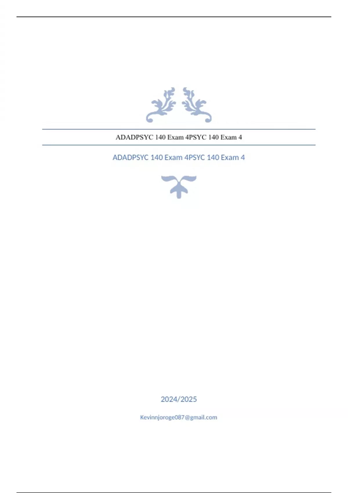 ADADPSYC 140 Exam 4PSYC 140 Exam 4 questions and answers verified 2024