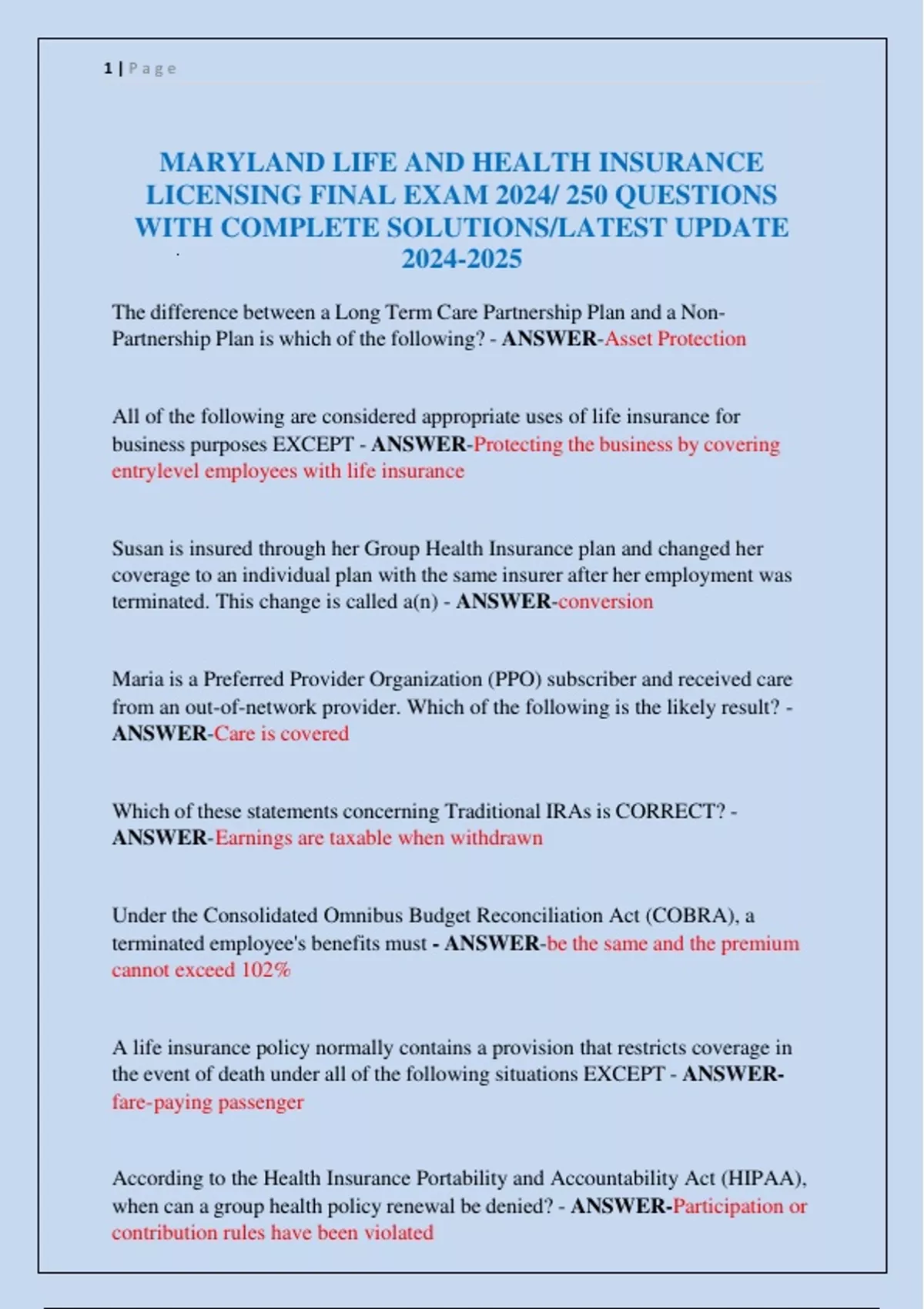 MARYLAND LIFE AND HEALTH INSURANCE LICENSING EXAMS 2024/MD LIFE AND HEALTH INSURANCE LICENSING BUNDLED EXAM 2024/NEWEST