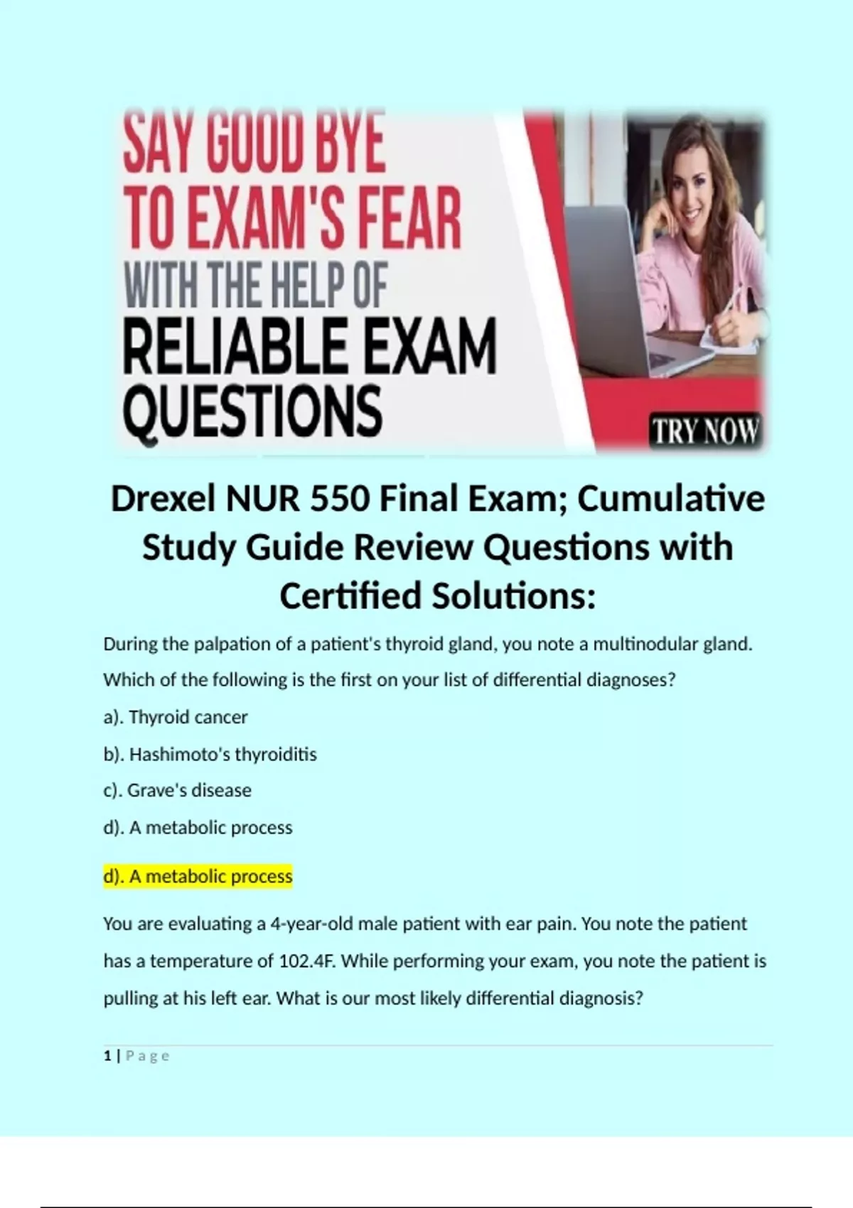 Drexel NUR 550 Final Exam Bundle.