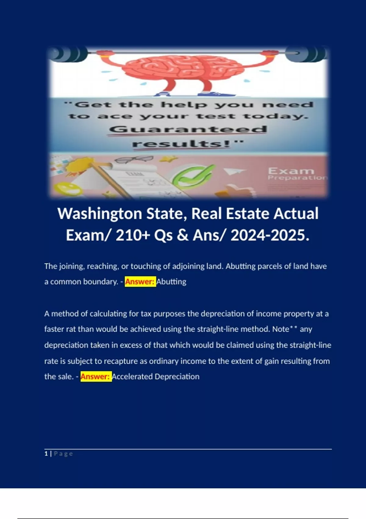 1 Exam (elaborations) Washington State Real Estate exam set 1/ 100 Qs & Ans/ Newly Updated 2024 2 Exam (elaborations) Washington State, Real Estate Actual Exam/ 210+ Qs & Ans/ .
