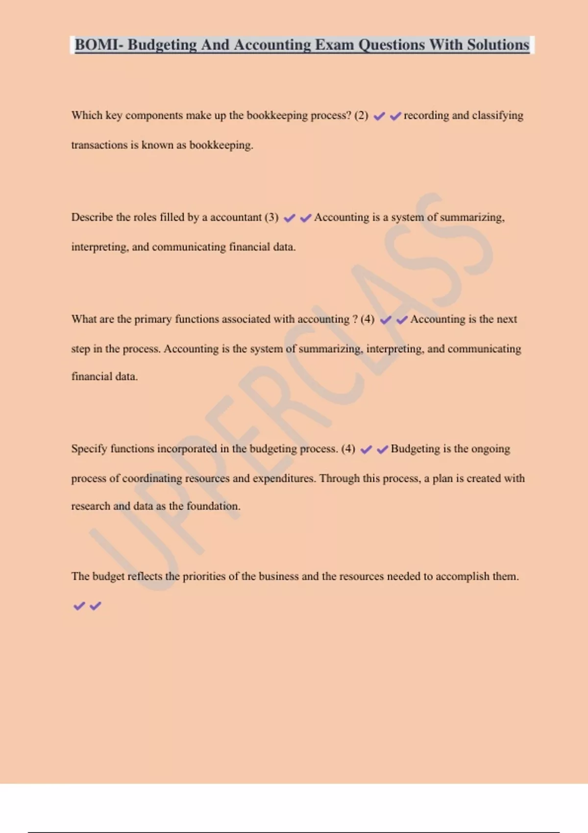 BOMI- Budgeting And Accounting Exam Questions With Solutions 2 Exam (elaborations) BOMI Final Exam Questions With Solutions 3 Exam (elaborations) BOMI - FM Fundamentals Exam Questions With Solutions 4 Exam (elaborations) Bomi: Air Handling, Water Treatment & Plumbing Systems Exam Questions With Solutions